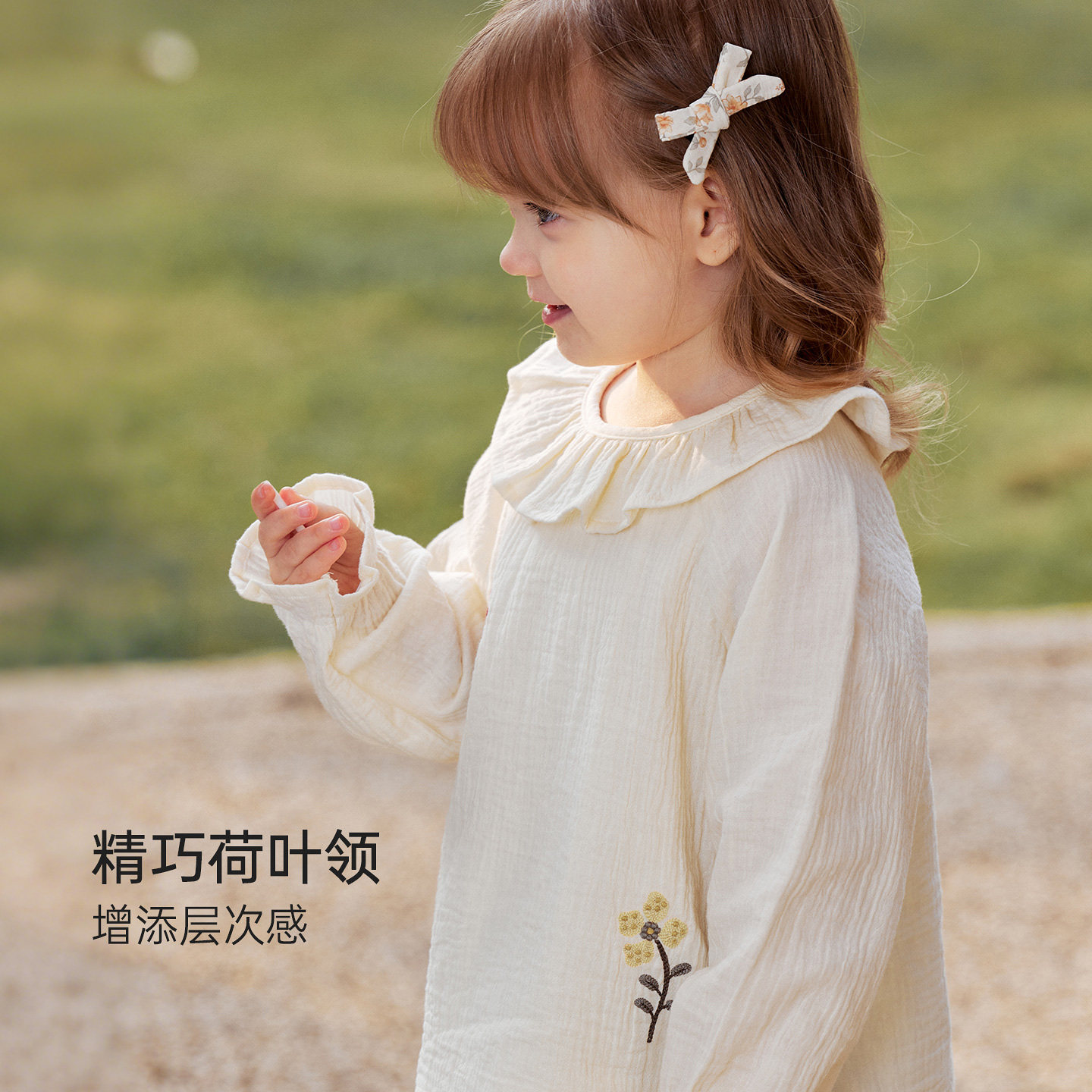 babylove女宝宝长袖t恤春秋纯棉纱布上衣女童荷叶领衣服拾花日记