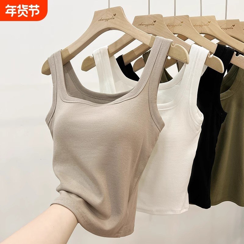 吊带小背心女2025内搭春夏季打底外穿白色美背带胸垫一体无袖上衣
