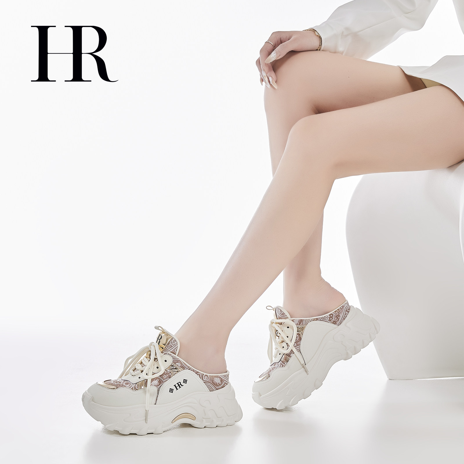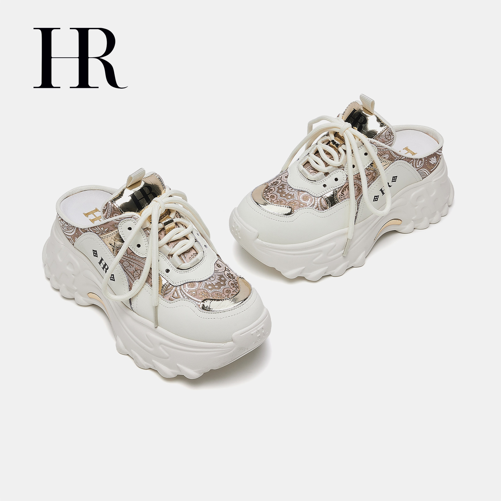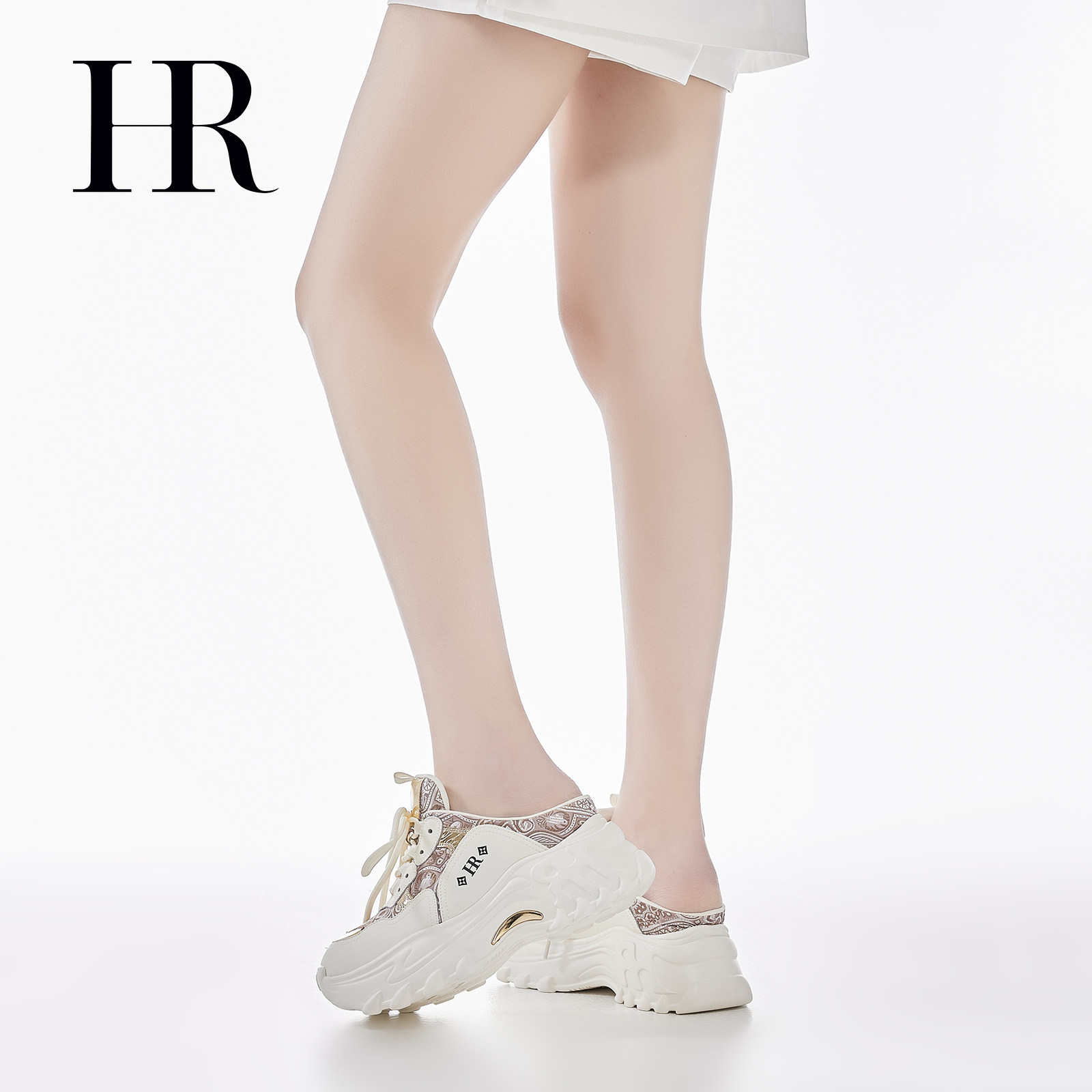 HR赫莲娜刺绣包头拖2026年夏季新款女鞋子厚底系带运动风休闲半拖
