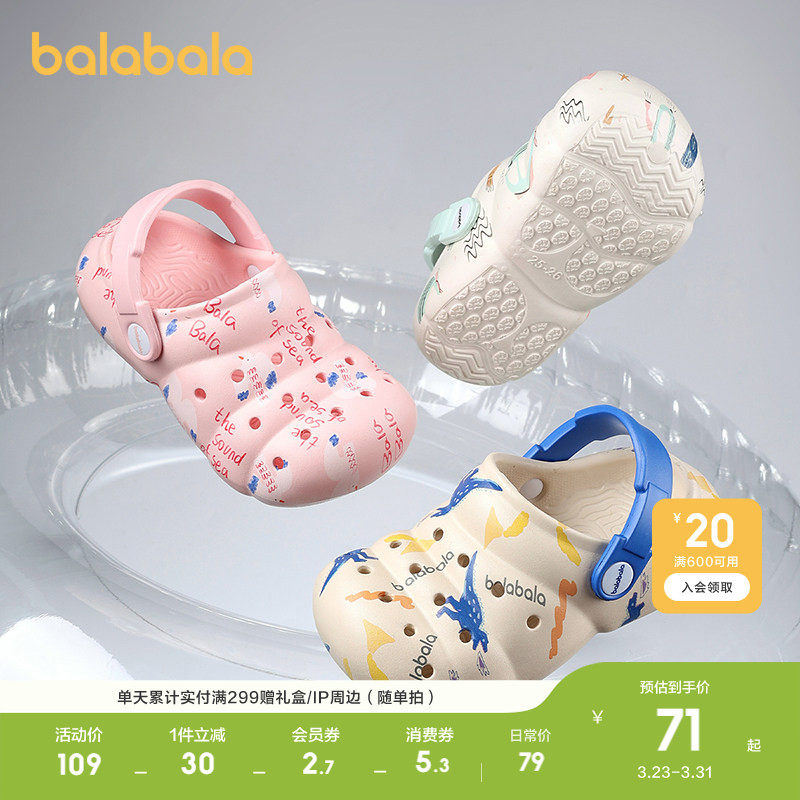 巴拉巴拉童鞋儿童洞洞鞋一脚蹬包头凉拖鞋男童女童夏季潮休闲百搭