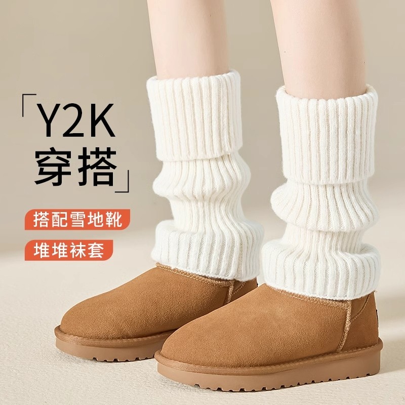 仿羊毛白色堆堆袜套显瘦袜子女秋冬针织加厚保暖Y2K小腿套中筒袜