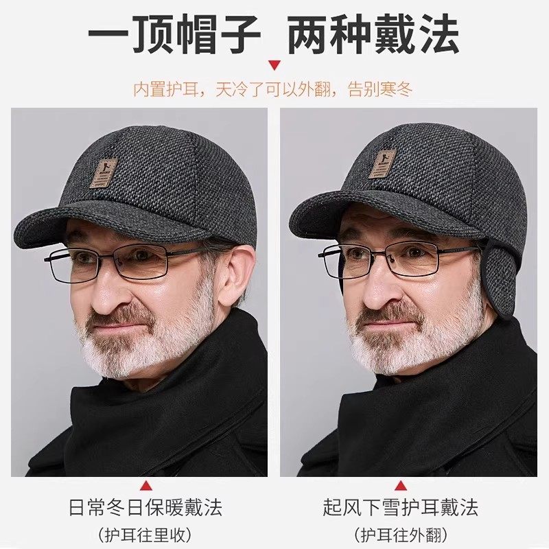 男士帽子护耳棒球帽中老年冬天保暖加厚鸭舌帽休闲老头老人爸爸帽