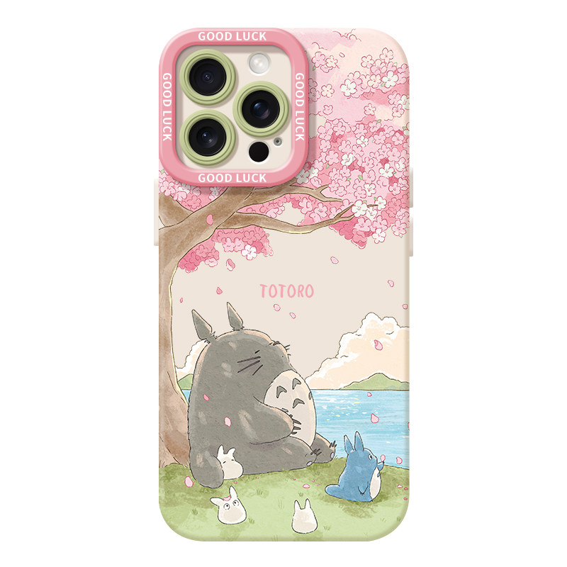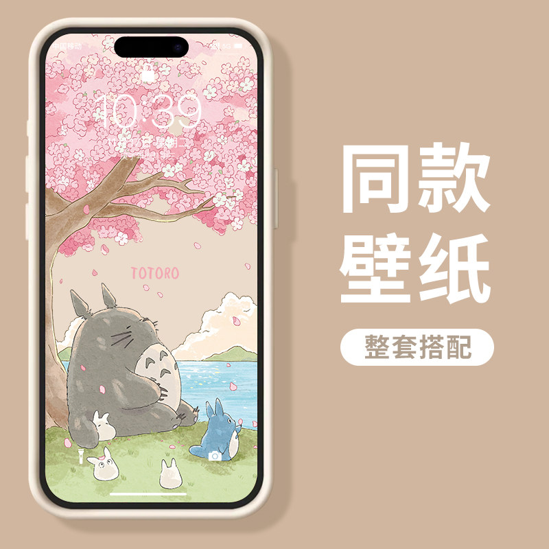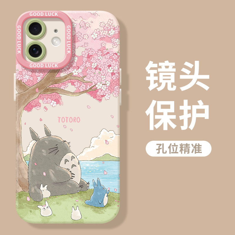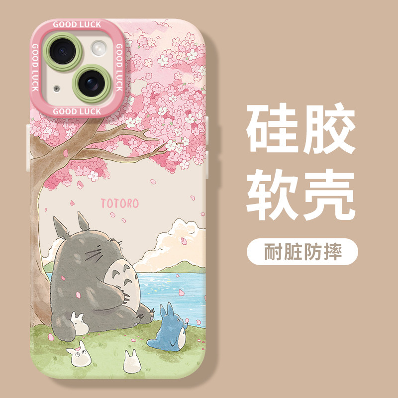 适用于苹果16pro硅胶手机壳14promax全包软壳苹果13promax可爱创意樱花树下龙猫15pro文艺12promax新款手机壳