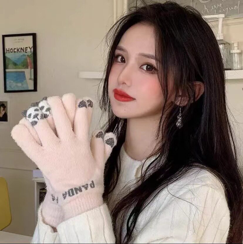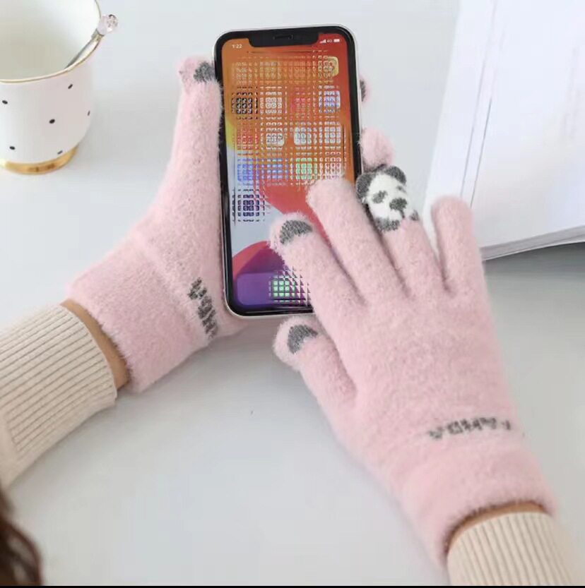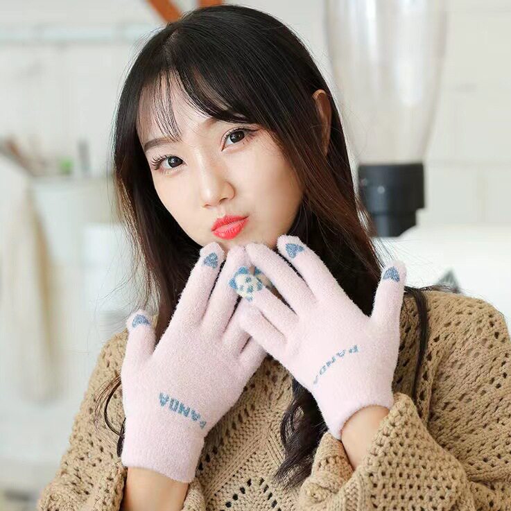 韩版可爱熊卡通学生写字加绒加厚保暖手套户外防寒骑行触屏手套