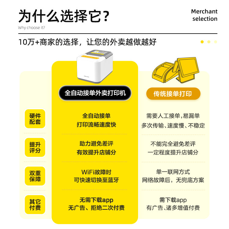 【美团自营】美团外卖云打印机自动接单京东外卖打印机蓝牙外卖打印机专用美团外卖智能硬件