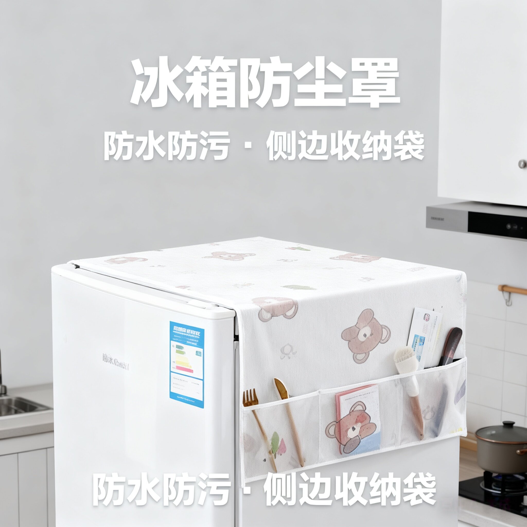 家用冰箱防尘罩多功能盖布PEVA防水防油冰箱罩盖巾居家布艺防尘袋