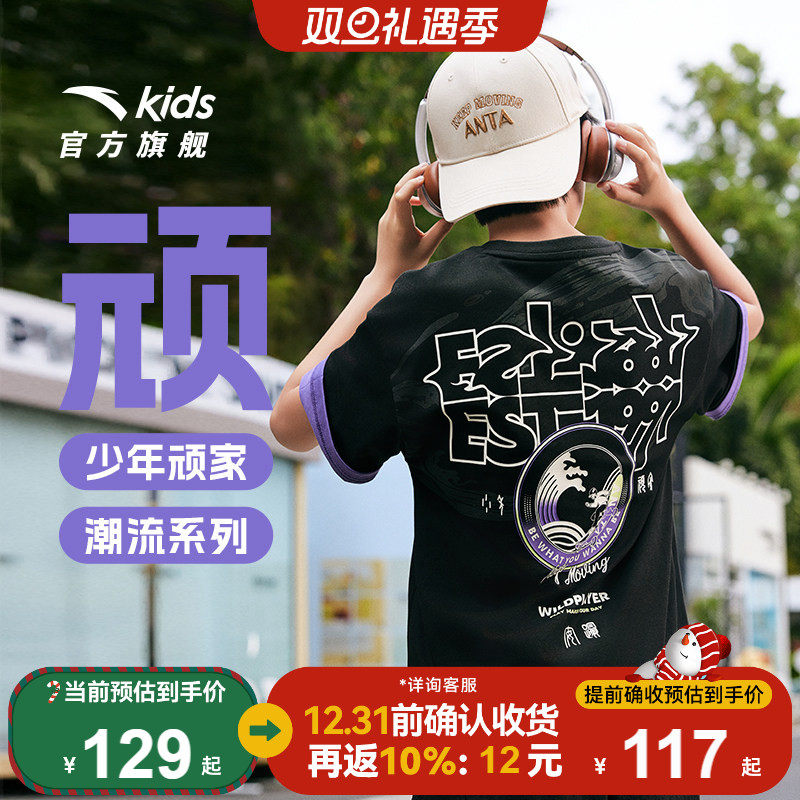 【K姐推荐】安踏儿童T恤2025夏季新款少年顽家短T柔软亲肤短袖
