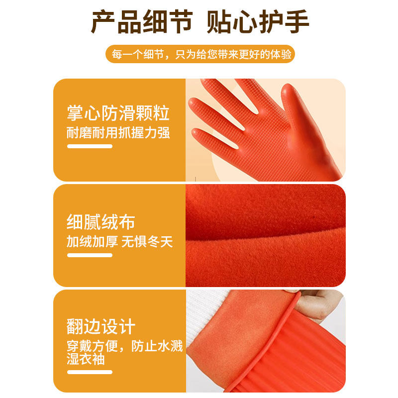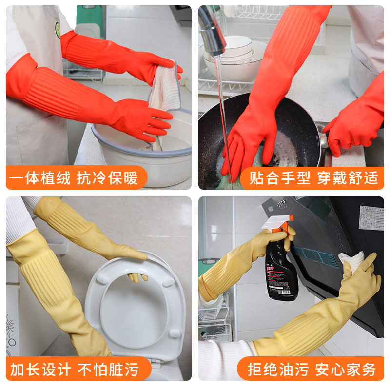 洗碗手套加绒加厚保暖款男女厨房耐用橡胶乳胶皮洗衣加长手套家务