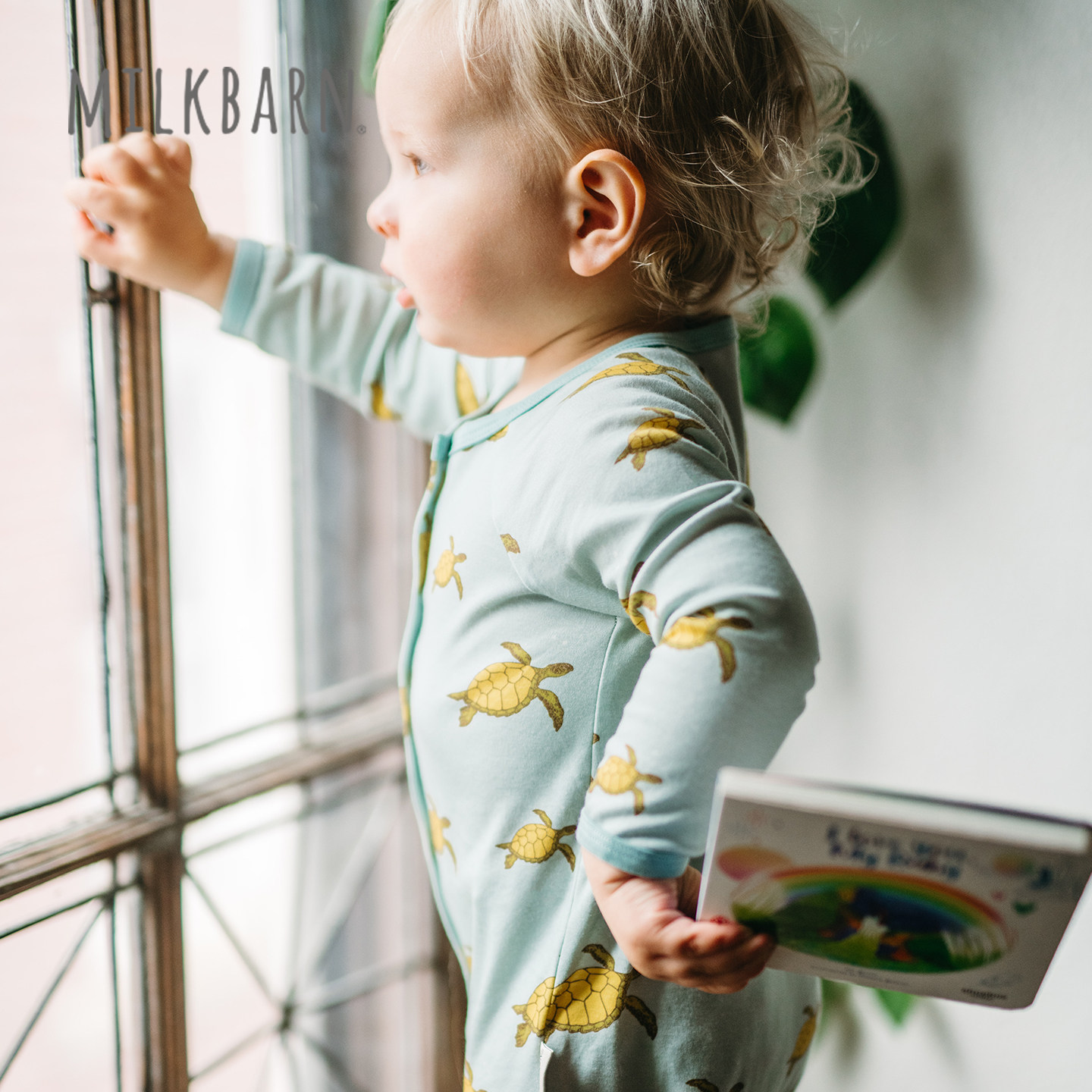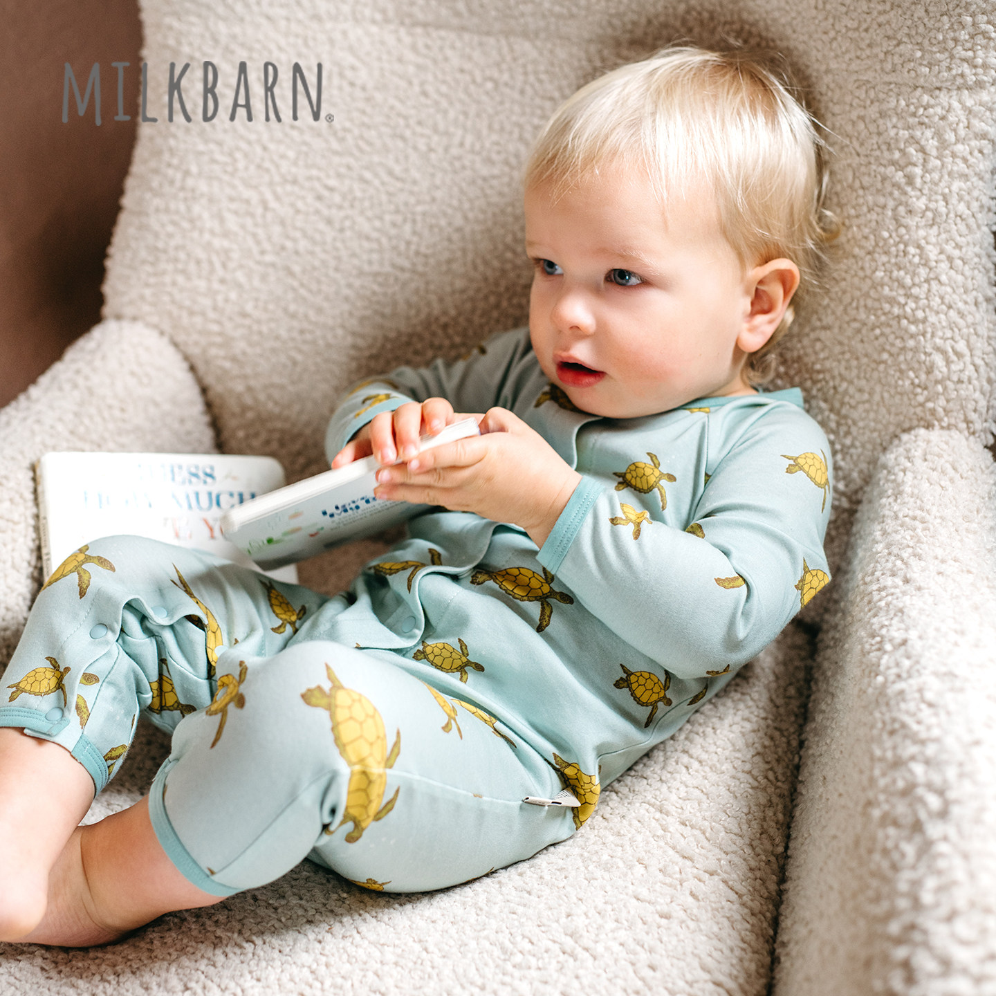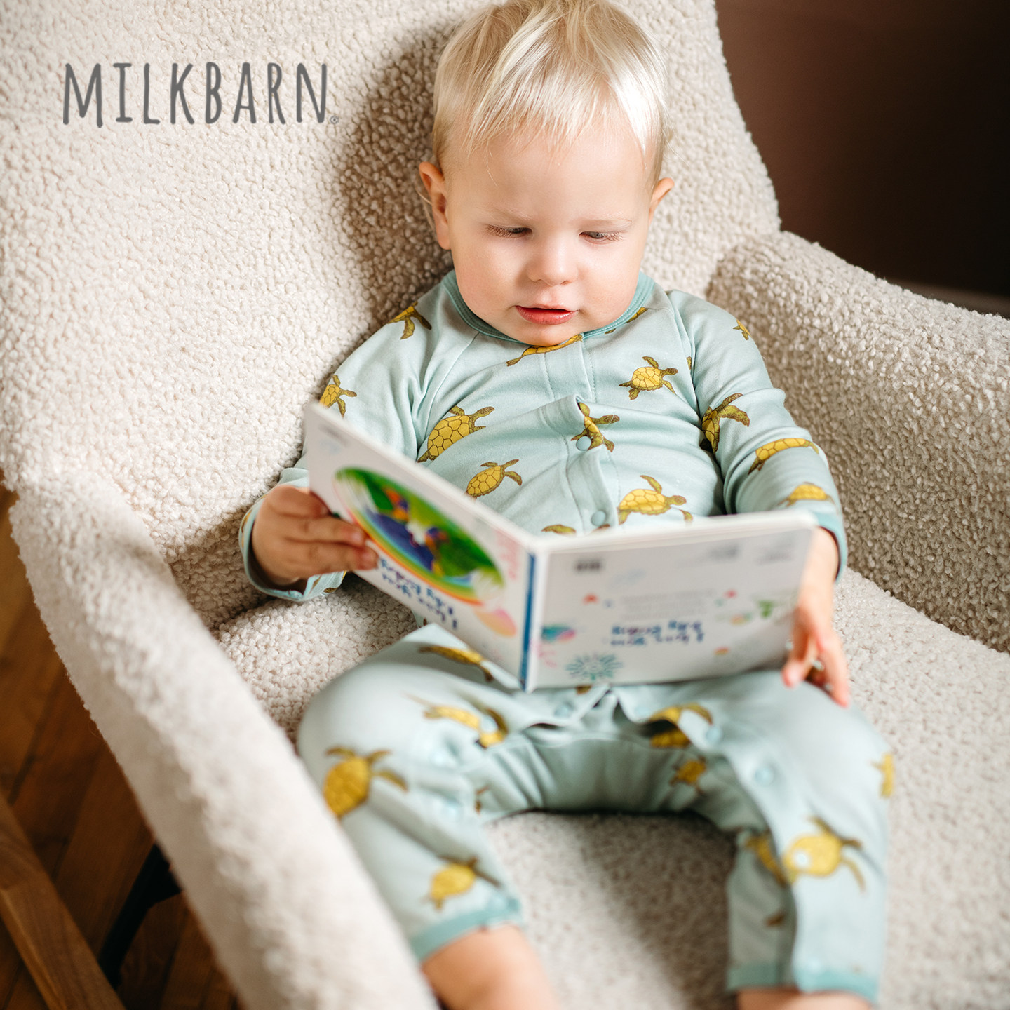 Milkbarn2026春夏新品婴幼儿长袖连体服宝宝纯棉哈衣简约印花爬服