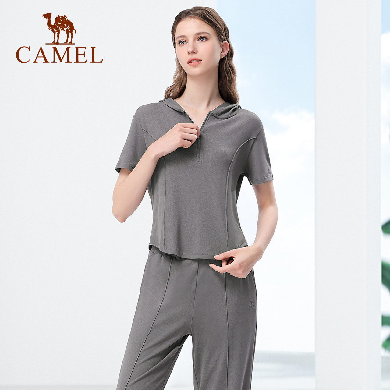 骆驼瑜伽服套装女款夏季晨跑服户外高弹透气运动服休闲修身健身服