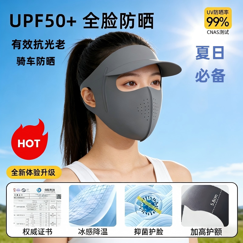 新款脸基尼全脸防晒面罩女夏季防紫外线冰丝轻薄透气护眼角口罩