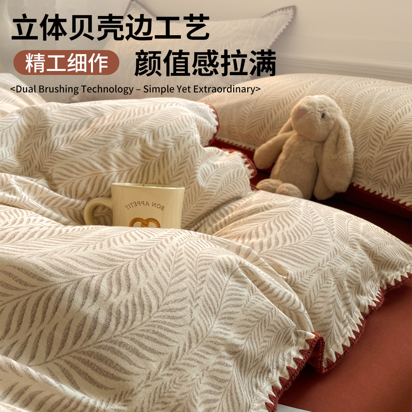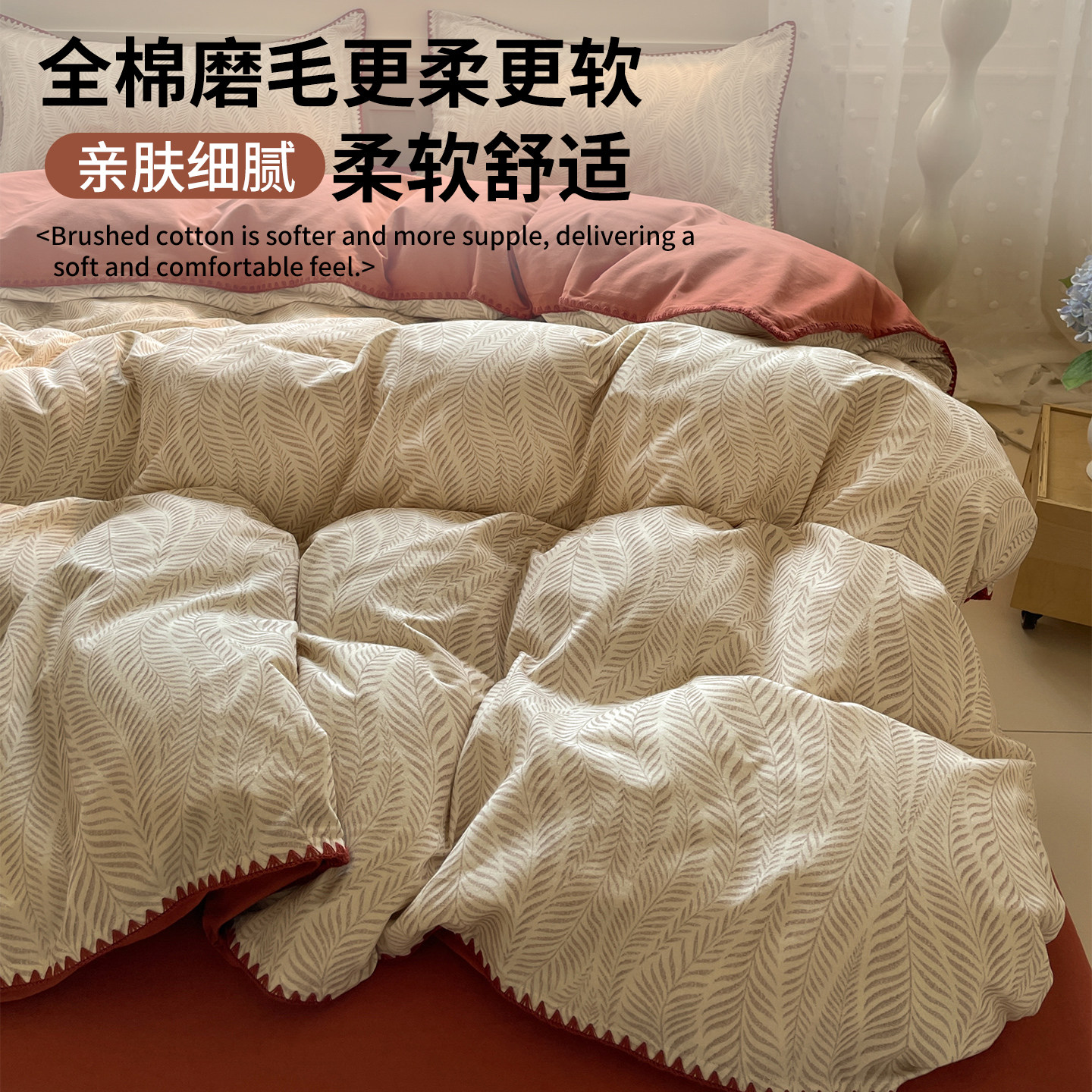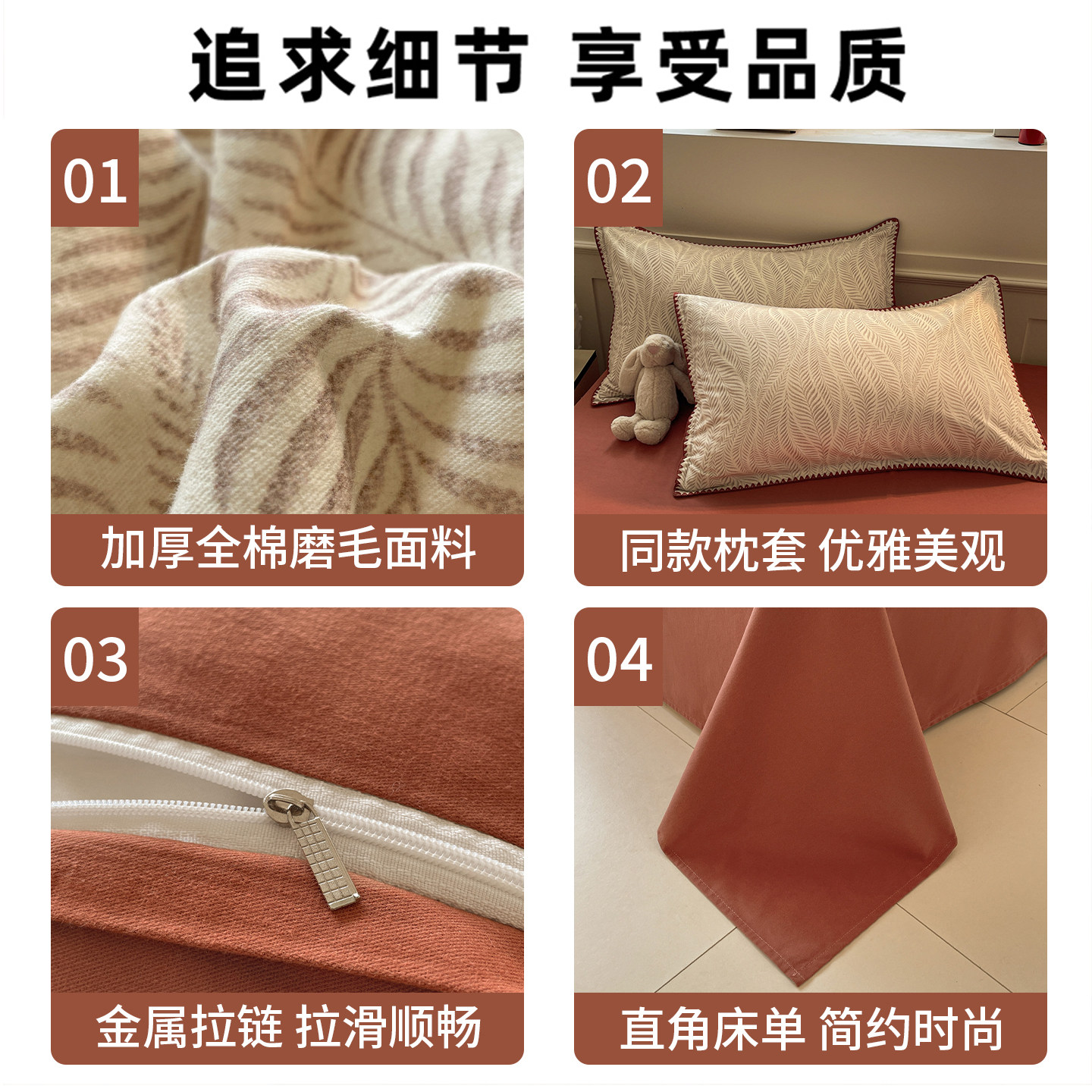 无印良品全棉加厚磨毛四件套纯棉床单被套三角针秋冬保暖床上用品