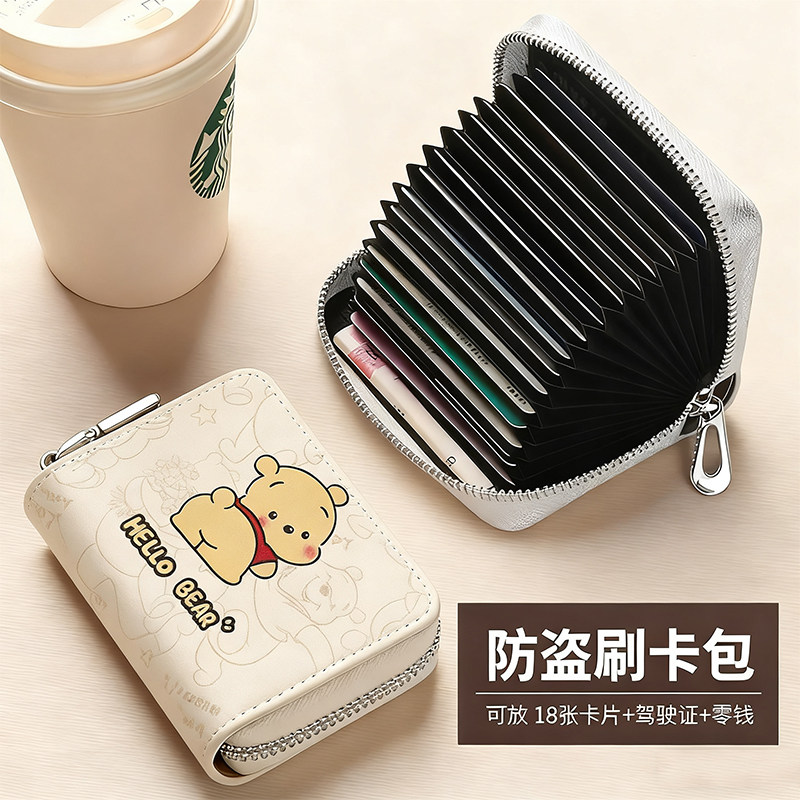 可爱维尼熊证件卡包新款超薄多卡位卡套多层小众钱包二合一驾驶证