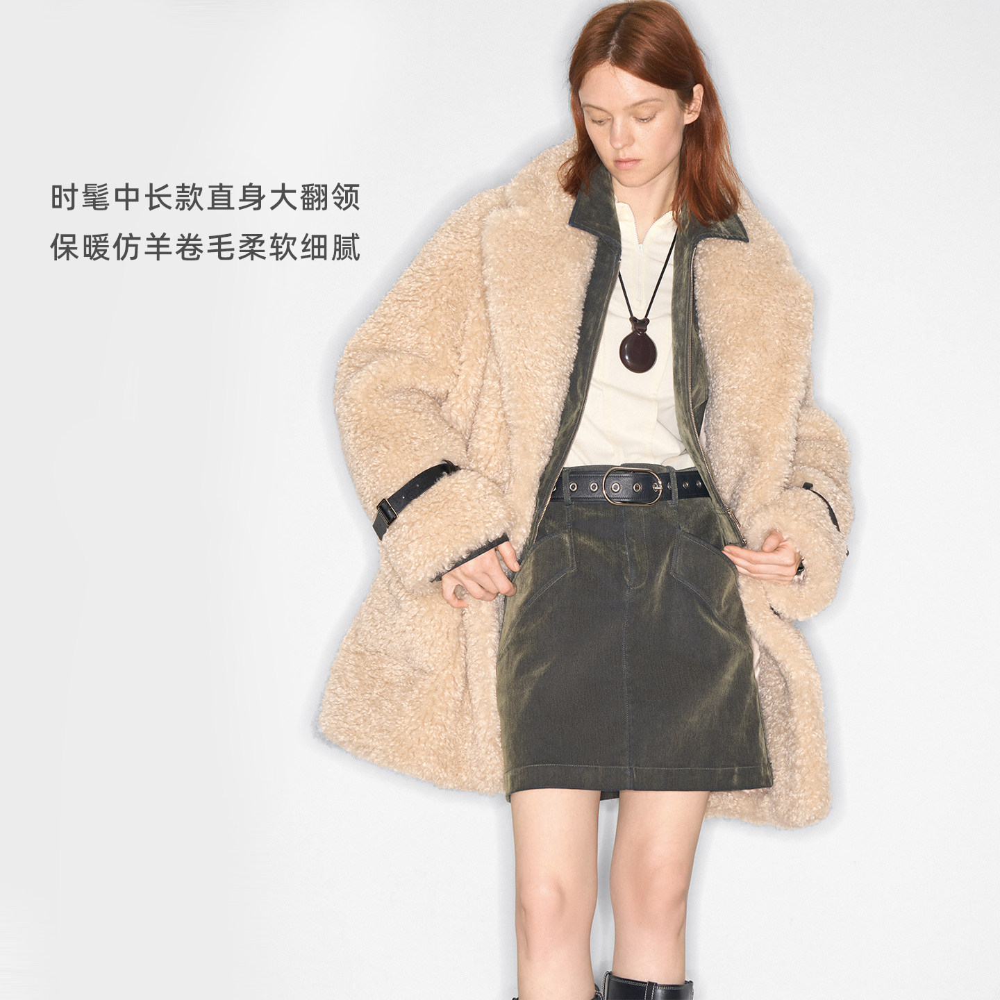 宽松毛毛外套 仿羊卷毛柔软保暖时髦御寒
