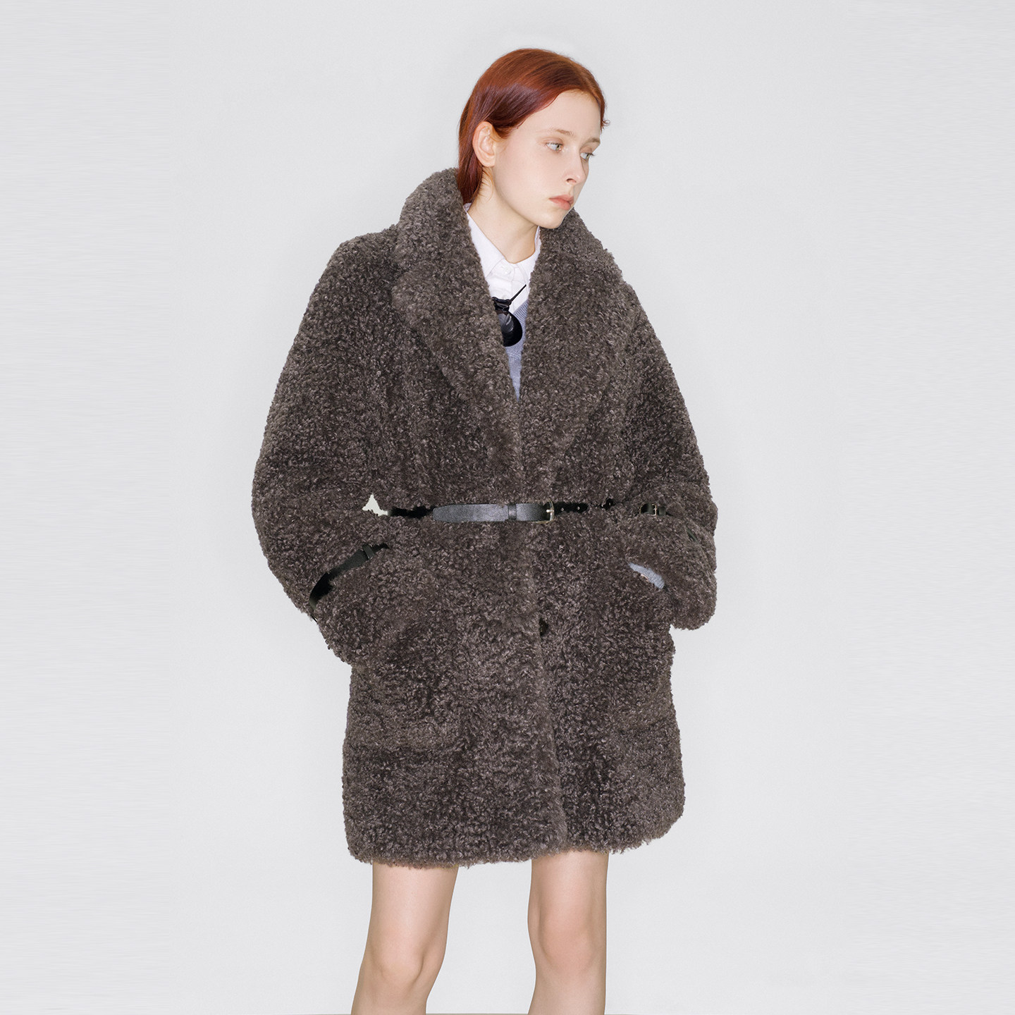 lost in echo2025冬季新款气质宽松大翻领仿羊卷毛中长皮草外套
