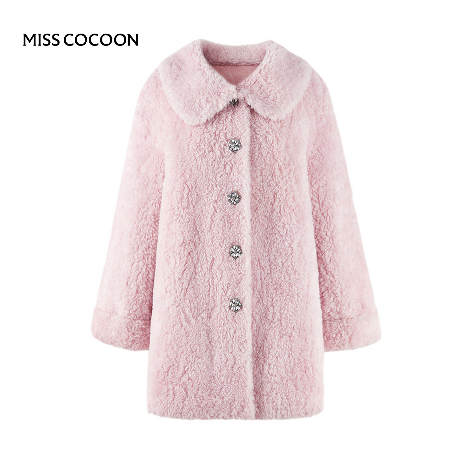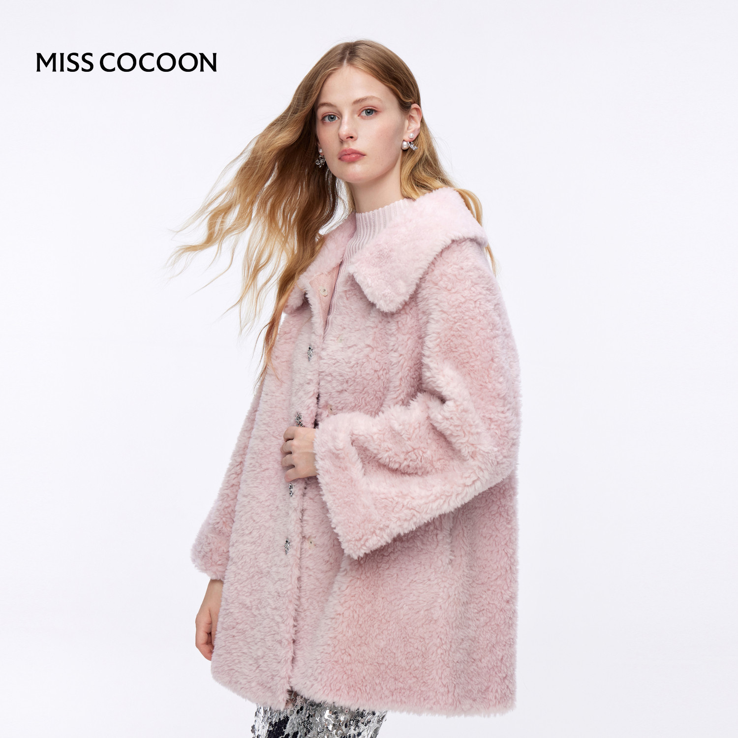 MISSCOCOON可可尼毛绒大衣女2025冬新款千金风翻领绵羊毛皮草外套