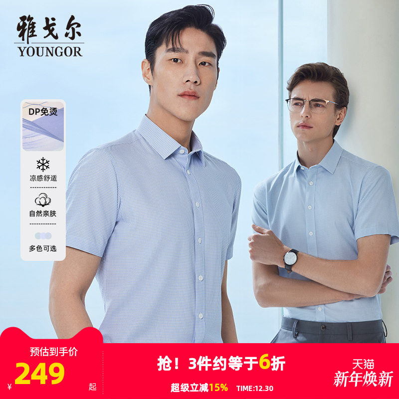 【冰丝凉感免烫】雅戈尔官方夏季新品商务格纹休闲衬衣短袖衬衫男