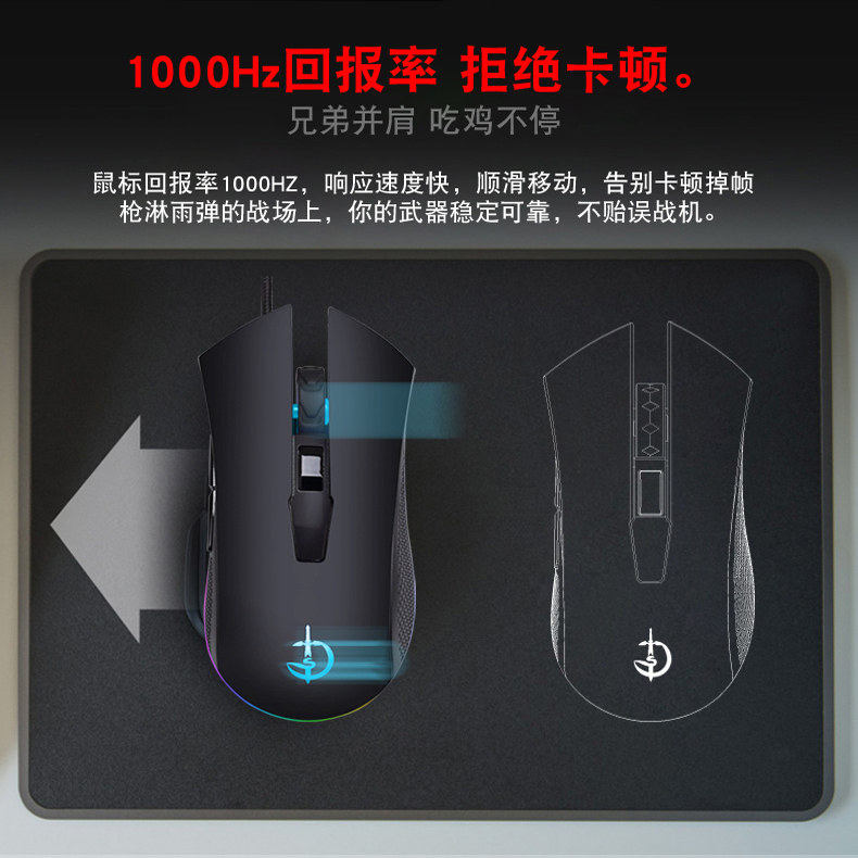 英菲克PW1有线鼠标静音游戏电竞机械宏办公usb台式笔记本电脑专用
