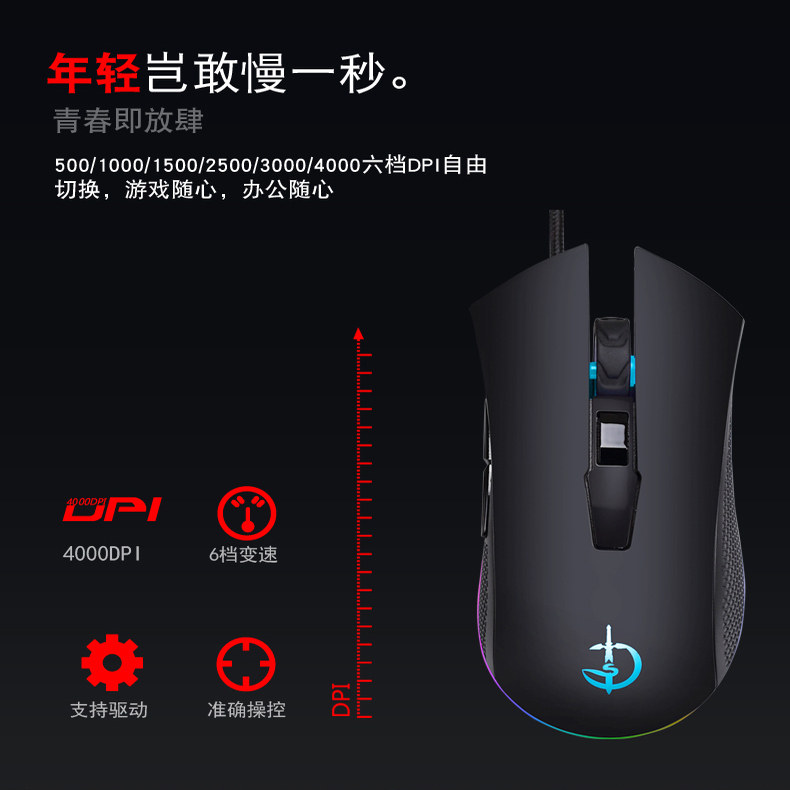 官方旗舰店达尔优鼠标EM915有线电竞游戏宏用笔记本电脑办公滑鼠