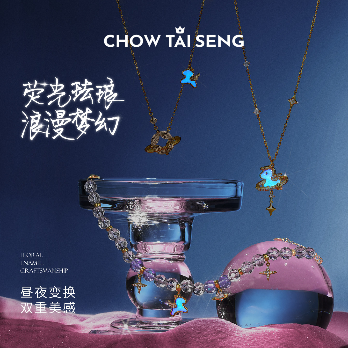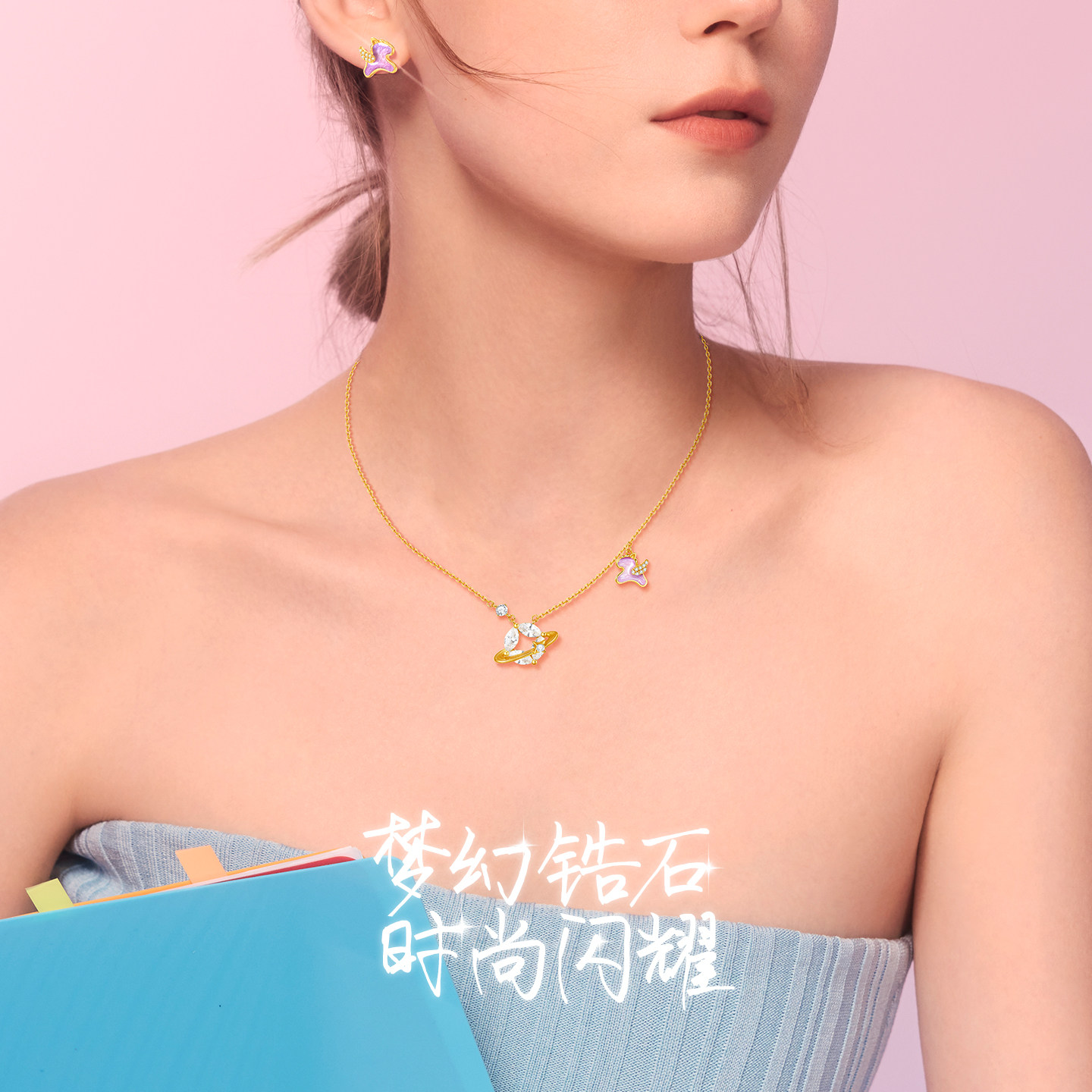 周大生浪漫花火项链女配饰纯银荧光珐琅烟花锁骨链圣诞礼物送女友
