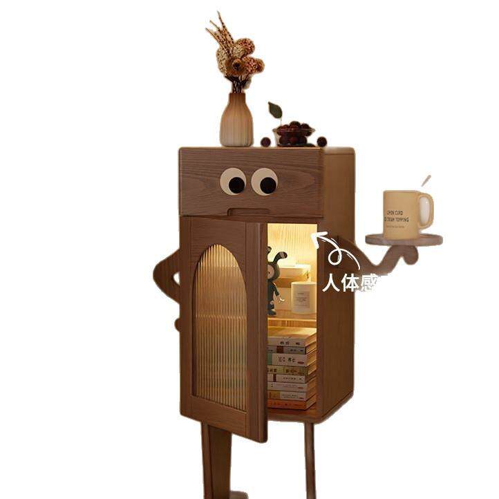 实木床头柜收纳卧室储物柜儿童床边柜客厅创意斗柜机器人侧边带灯