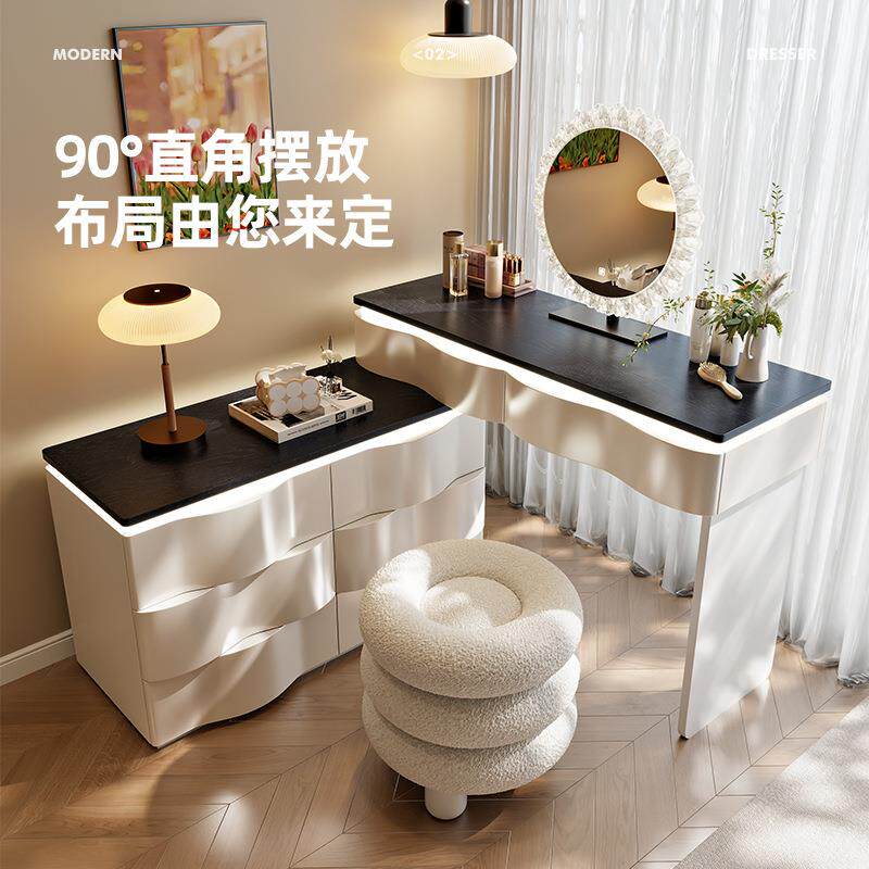 2025新款实木梳妆台现代卧室简约化妆桌斗柜一体小型收纳柜化妆镜