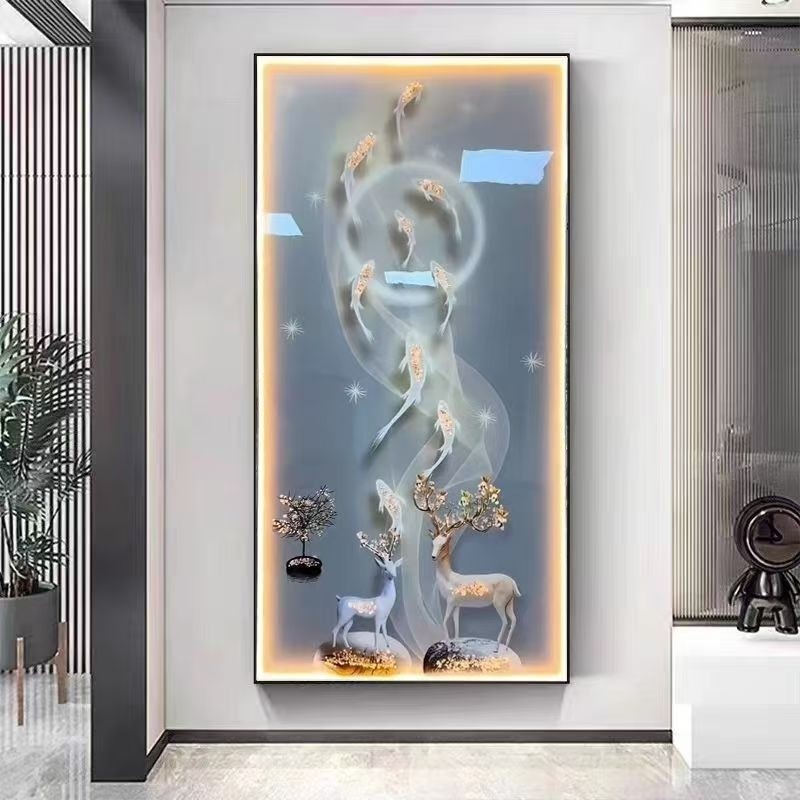 九鱼图鱼跃龙门玄关装饰画新中式走廊过道挂画寓意轻奢入户门壁画