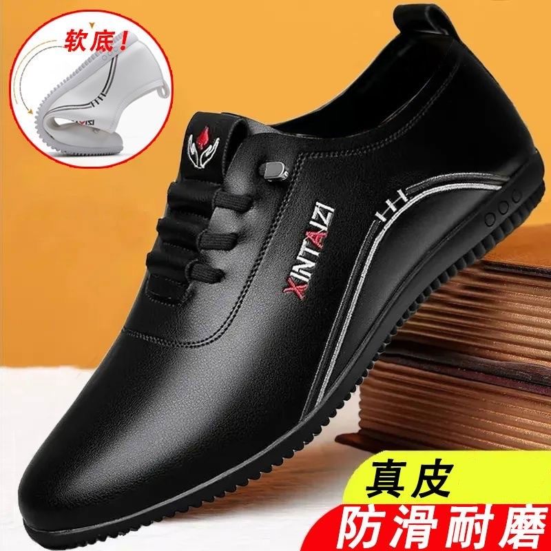 男士皮鞋男款真皮2025新款商务正装潮流黑色软底透气百搭休闲鞋子