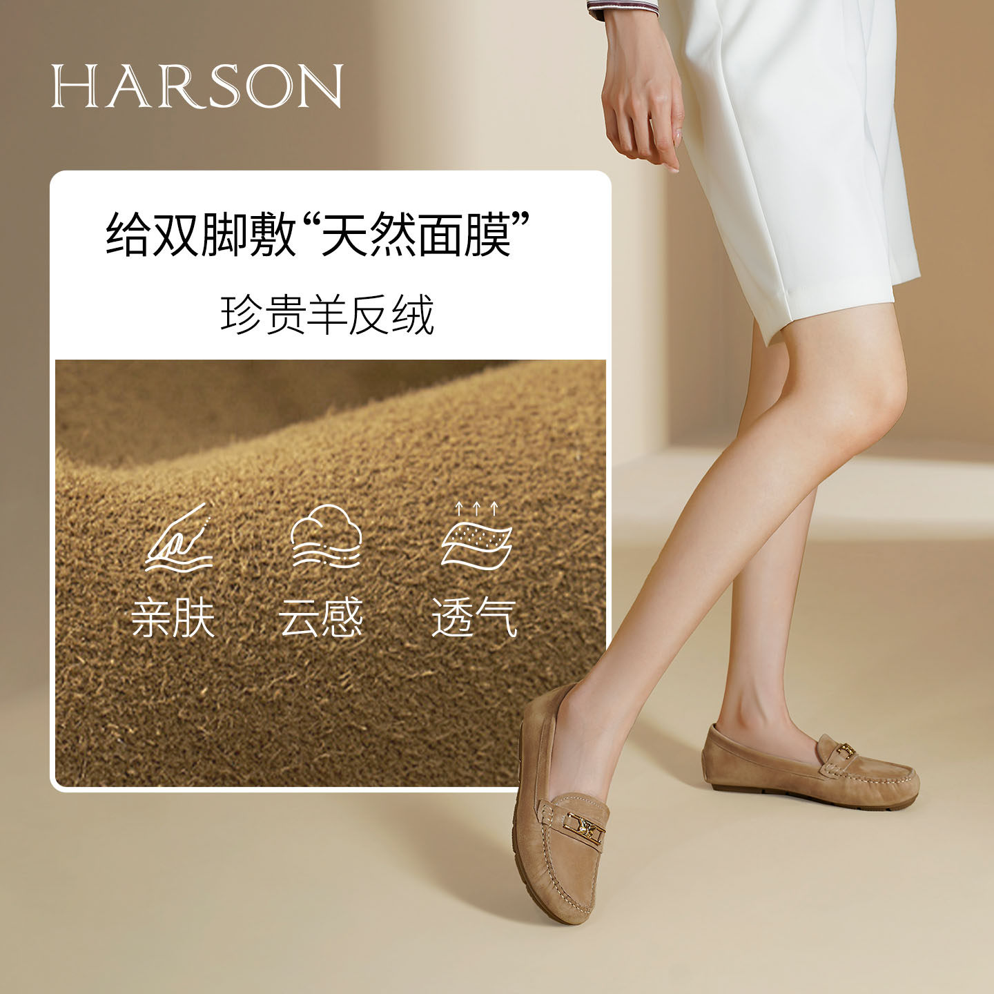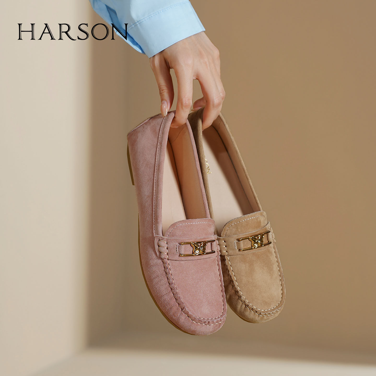哈森平底乐福鞋女秋季新款软底通勤一脚蹬绒面单鞋豆豆鞋HL249402