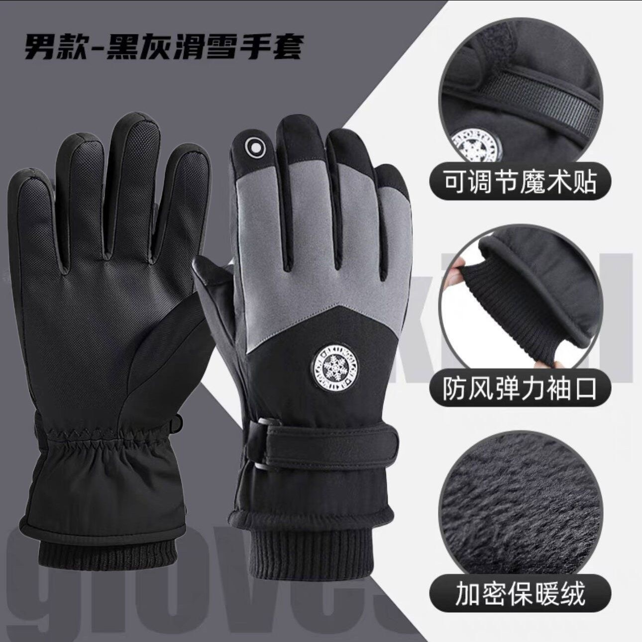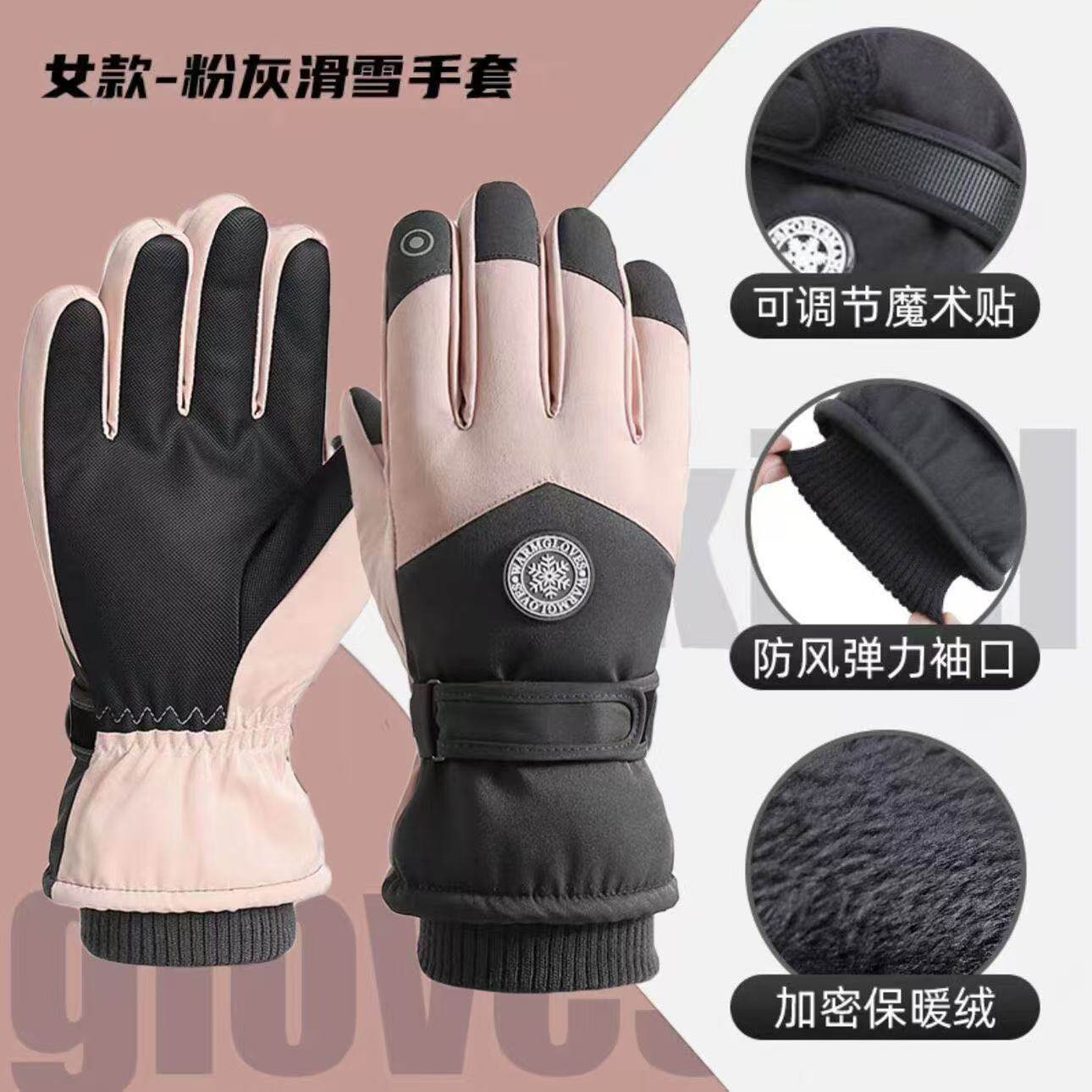 加绒加厚滑雪骑行手套 新款男女冬季防风防水 摩托车防寒手套