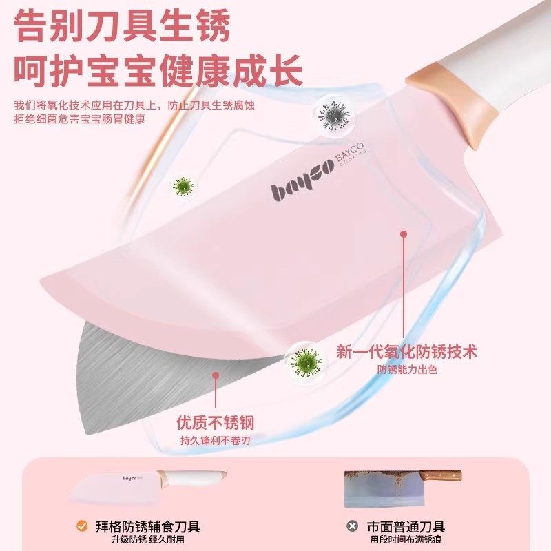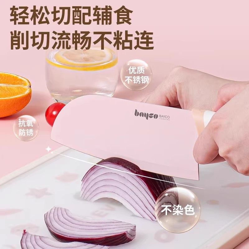 拜格婴儿辅食菜板刀具套装宝宝专用切菜刀二合一工具组合水果防霉