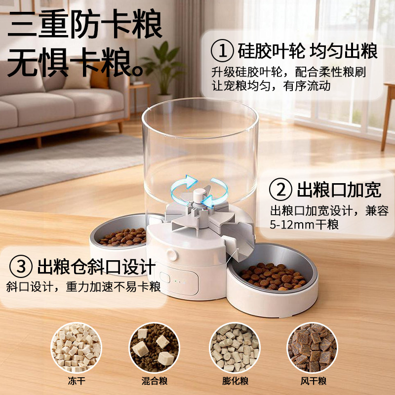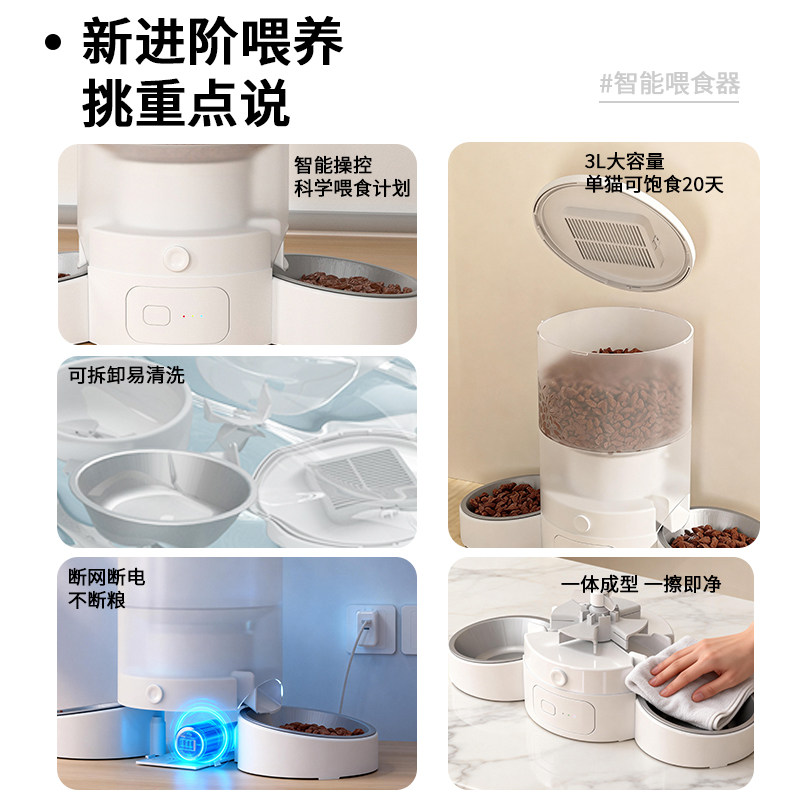 哈巴斯自动喂食器猫双碗宠物智能定时定量双猫咪多猫粮投喂器可视