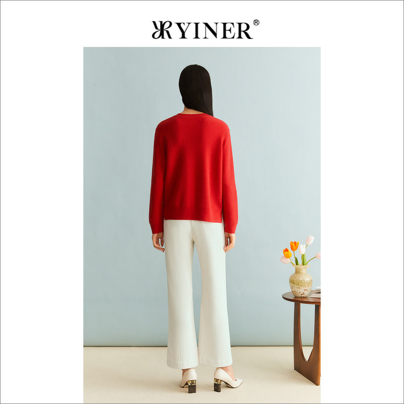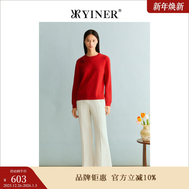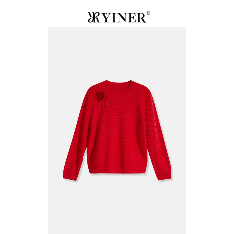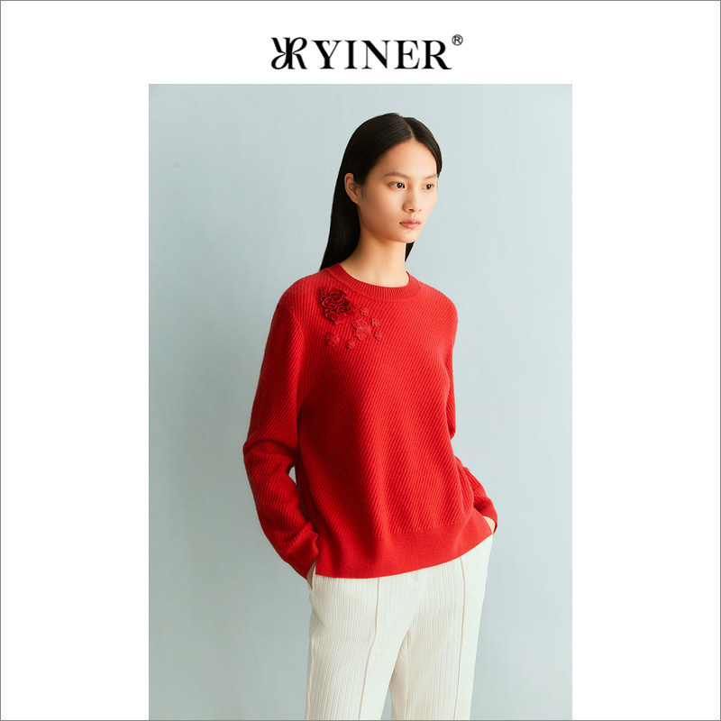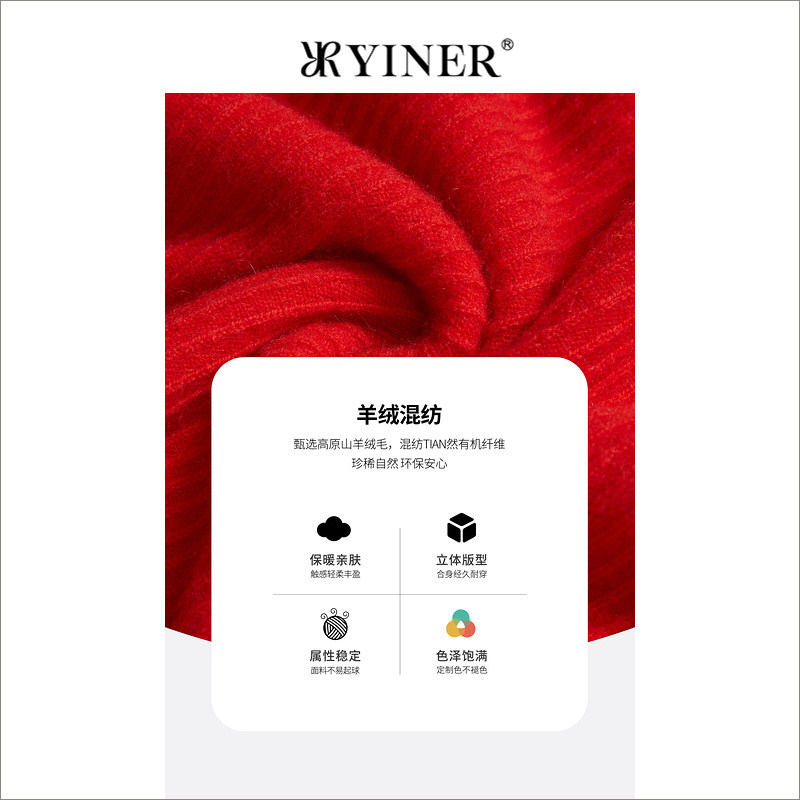 【中国红】YINER音儿女装冬季安可拉红羊绒绵羊毛针织衫