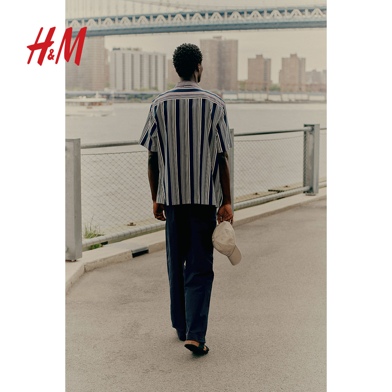 HM男装休闲裤冬季时尚松紧腰直筒宽松长裤美式长裤工装裤1231065