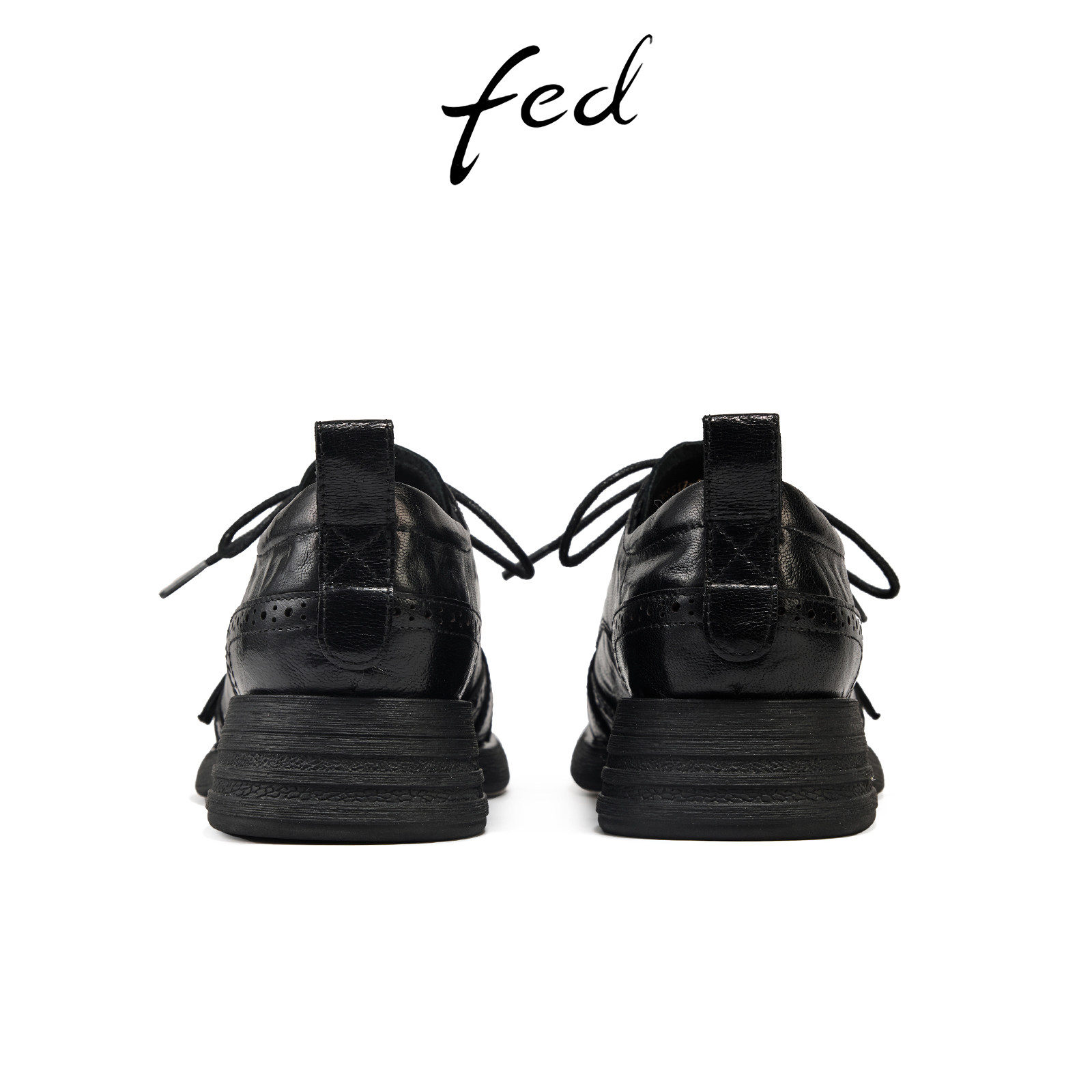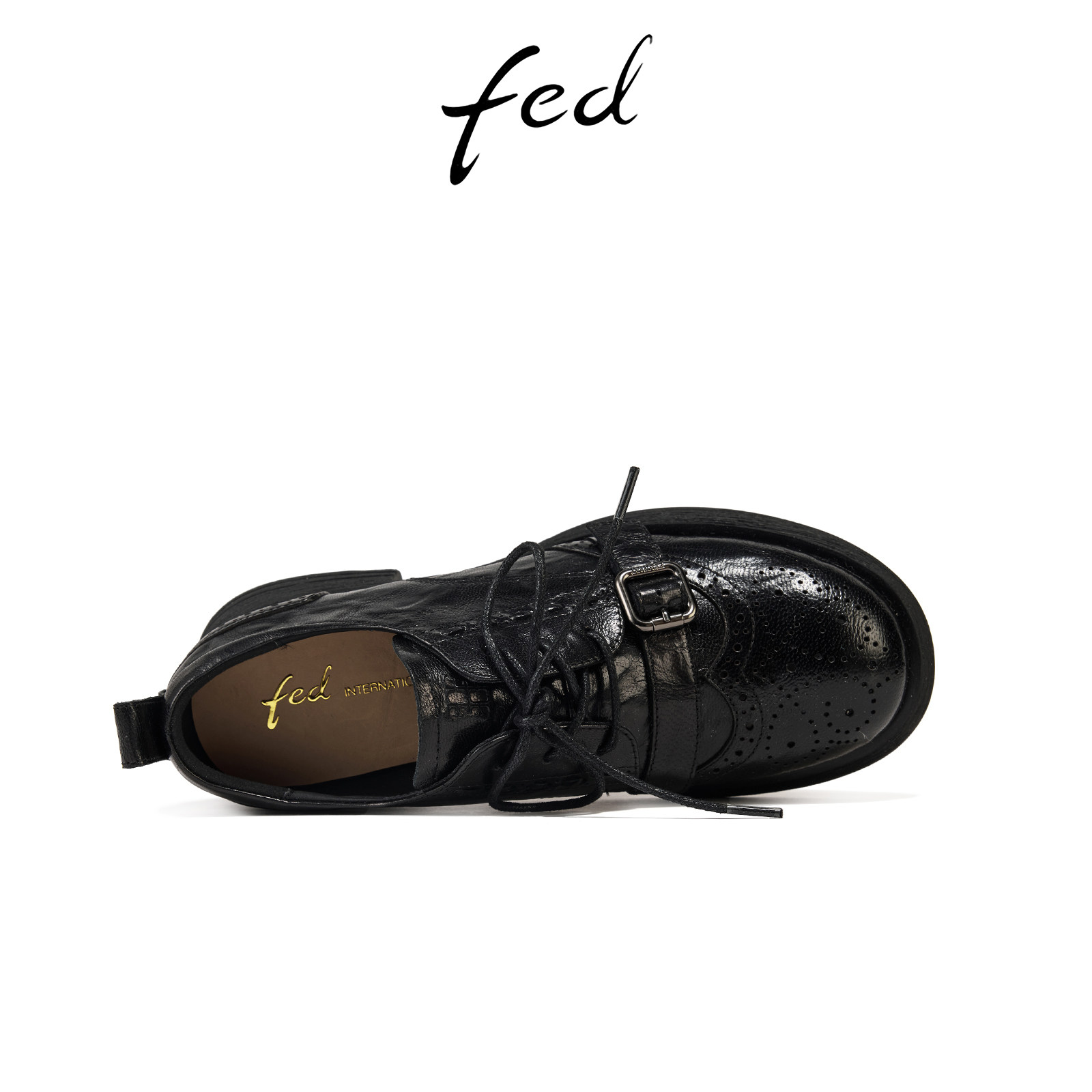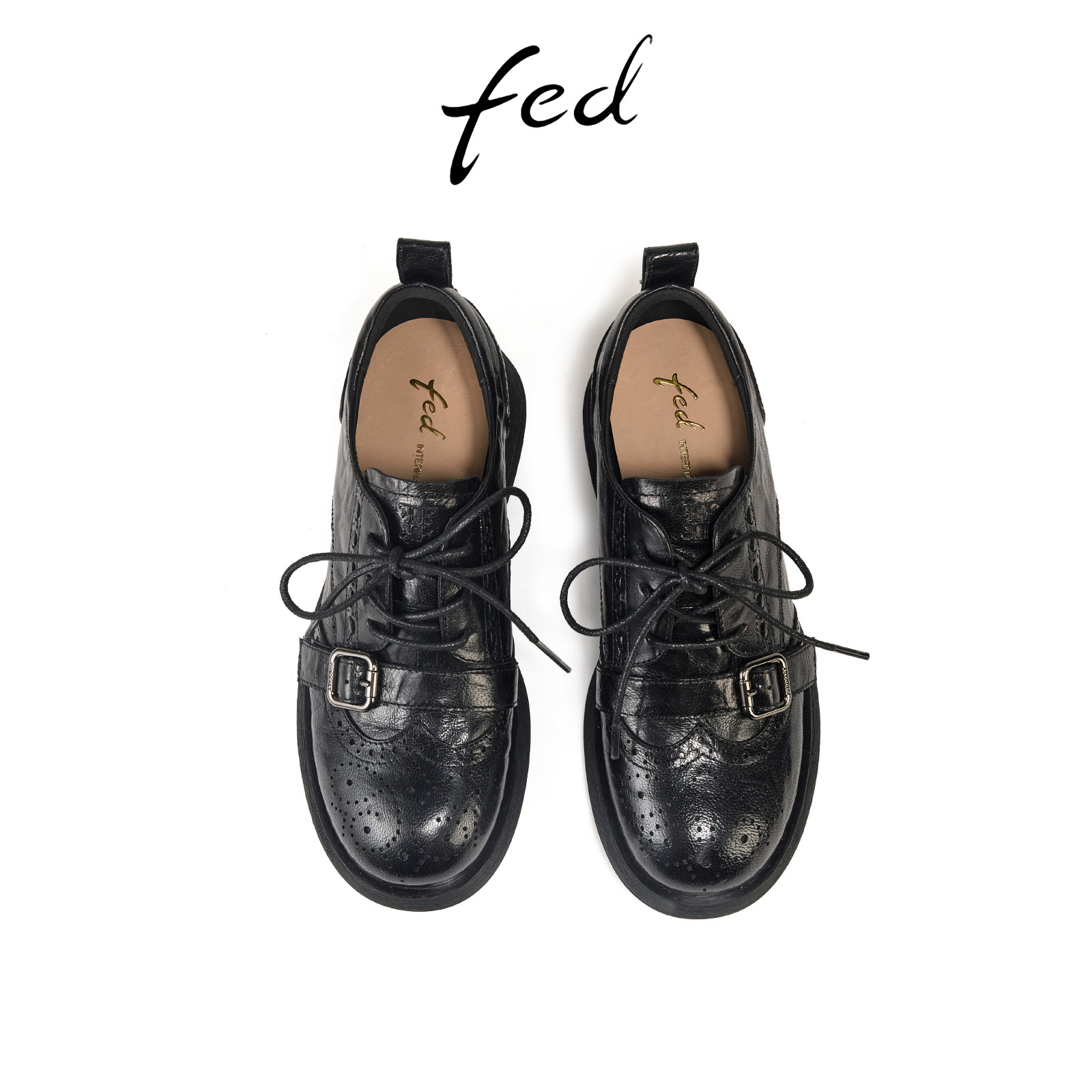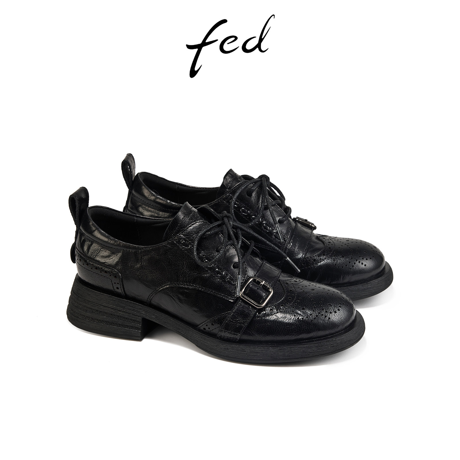 fed雕花小皮鞋秋季新款女鞋黑色布洛克鞋通勤单鞋女款S0815-ZC517