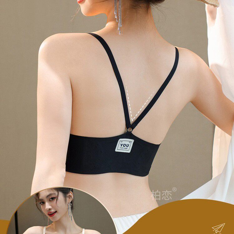 无痕美背抹胸内衣女小胸聚拢可外漏细肩带一体固定杯背心式文胸罩