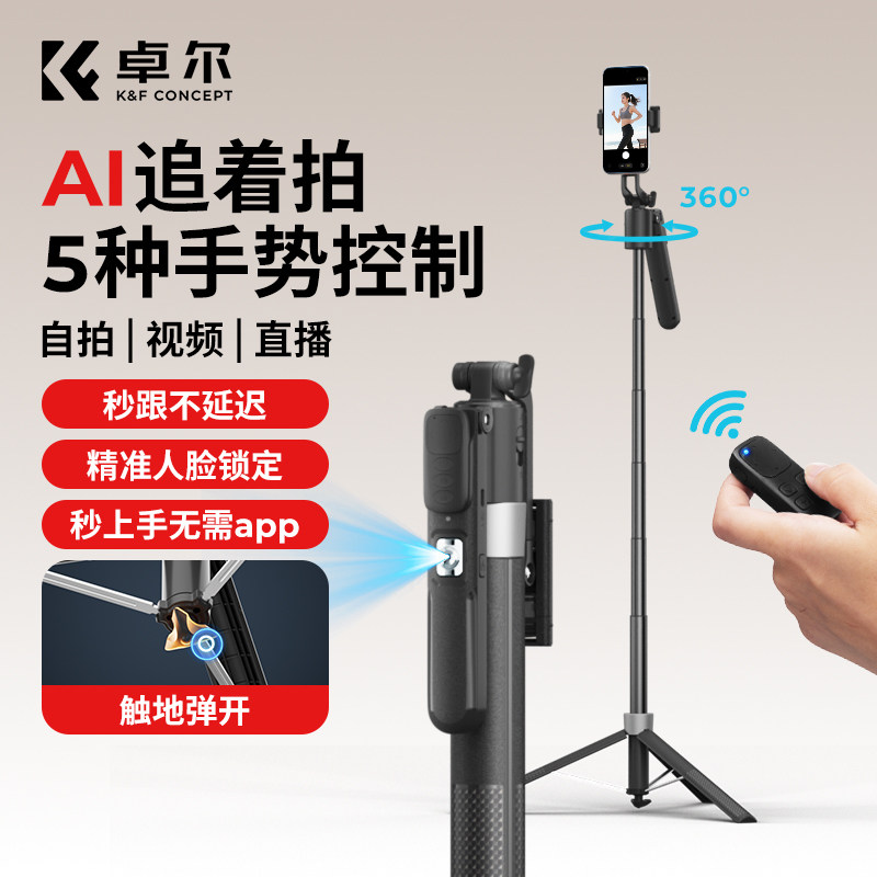 卓尔KF013智能AI云台自拍杆人脸追踪神器全自动跟拍360度旋转2025新款手机支架演唱会直播设备拍摄落地三脚架