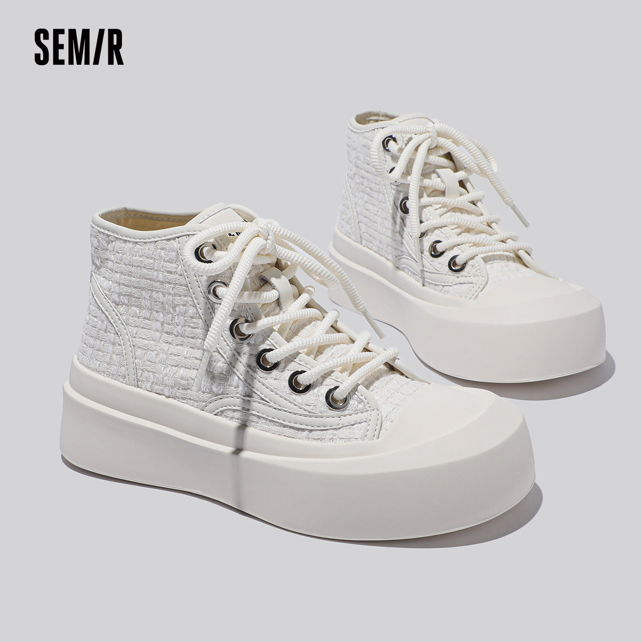 Semir厚底小白鞋女2025新款秋冬季百搭高帮帆布鞋小众休闲板鞋