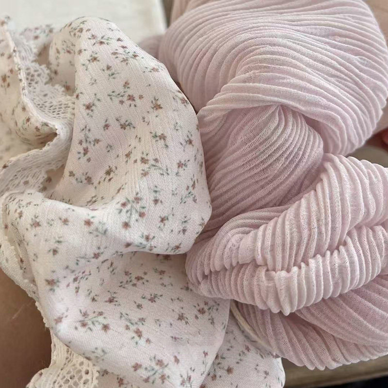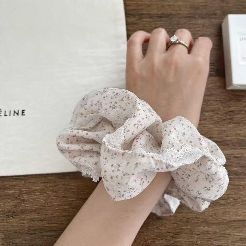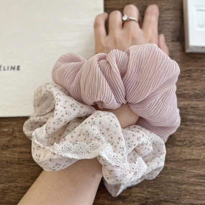 耐看温柔 藕粉色肠圈 蕾丝花苞大肠发圈碎花清新褶皱风琴头花发圈