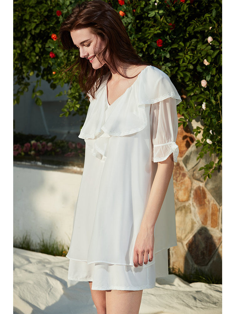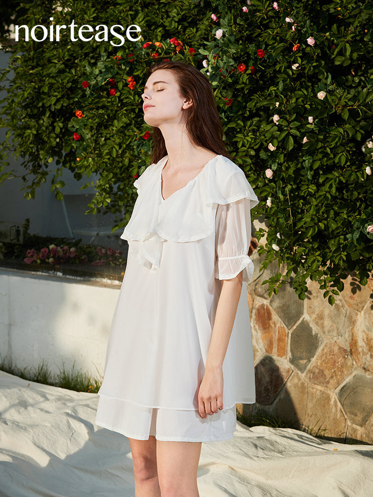 NoirTease奈黎诗夏季性感雪纺短袖连衣裙度假裙女薄款睡衣裙外穿
