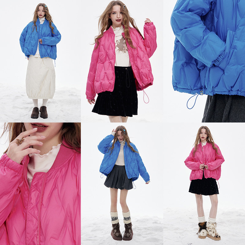 【鞠婧祎同款】鸭鸭2025年冬新款百搭短款女士纯色立领羽绒服外套