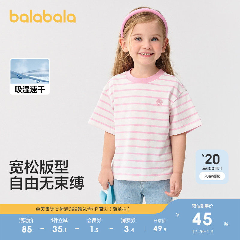 巴拉巴拉童装儿童短袖T恤2025新款男童女童春夏装吸湿速干亲子潮