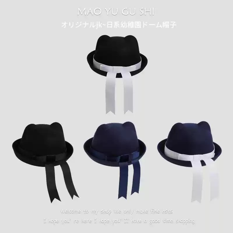 水手服帽子日系小圆顶帽jk制服蝴蝶结飘带帽学院风幼稚园日系礼帽