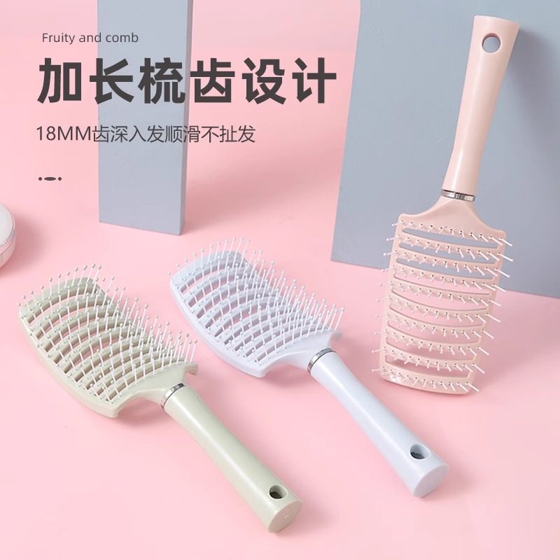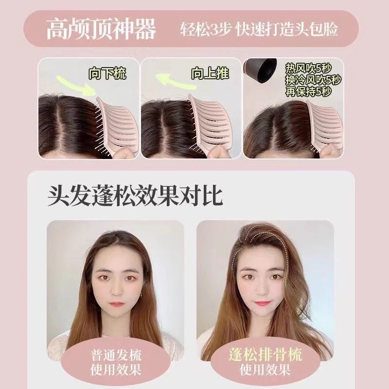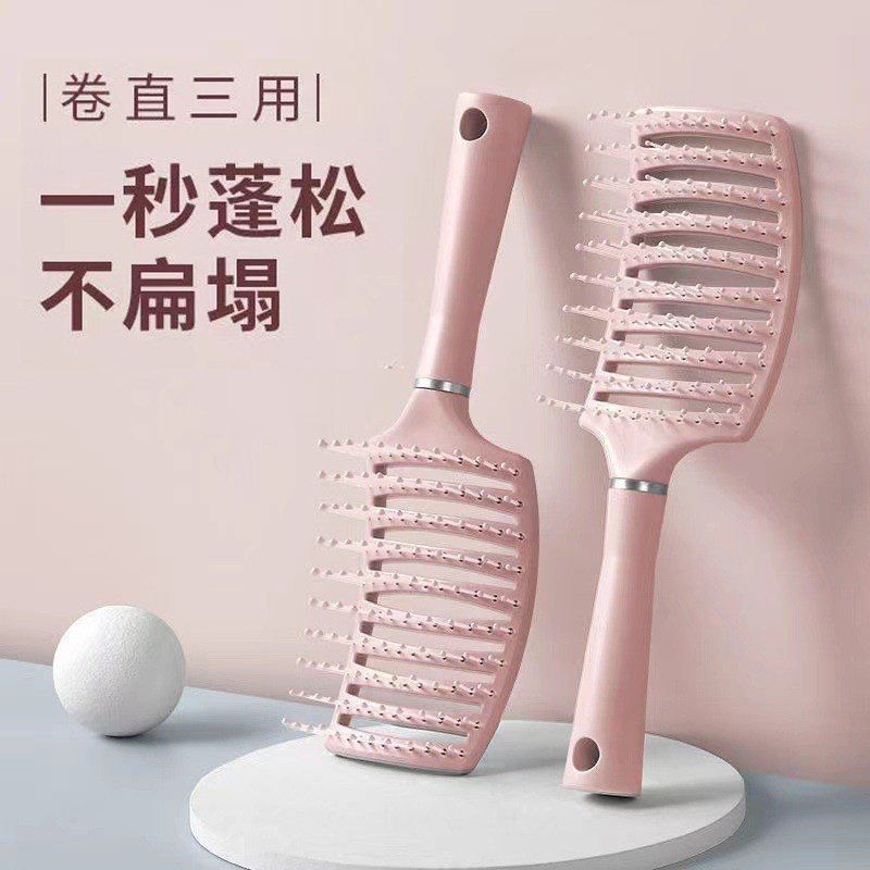 按摩排骨梳女士专用长发高颅顶发根蓬松造型镂空头梳卷发大弯梳子