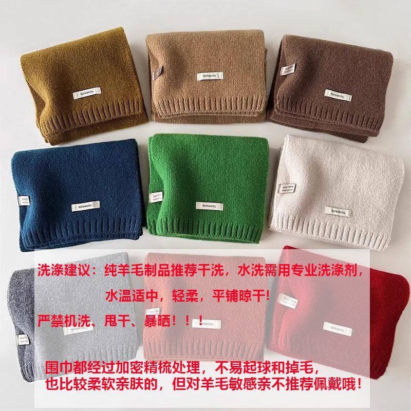精选澳洲100%纯羊毛围巾新款纯色百搭男女冬季保暖针织围脖情侣款