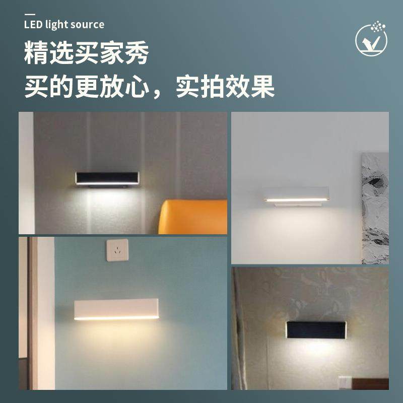 极简床头壁灯可旋转灯头北欧简约现代黑白led客厅卧室墙壁装饰灯
