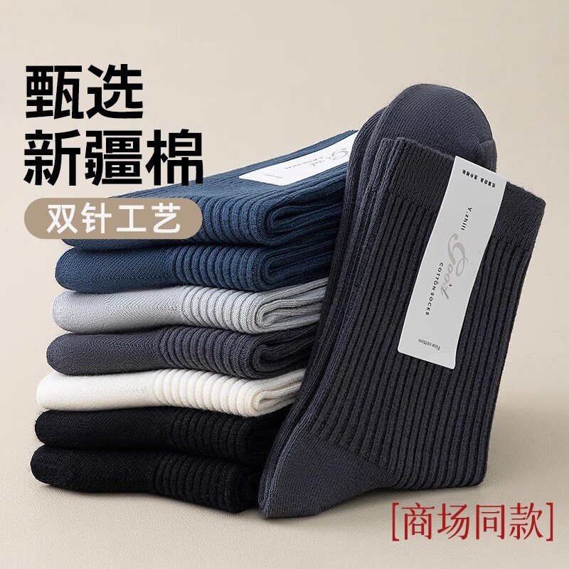 诸暨袜子男士纯棉中筒袜秋冬吸汗防臭运动棉袜春秋款商务男士长袜