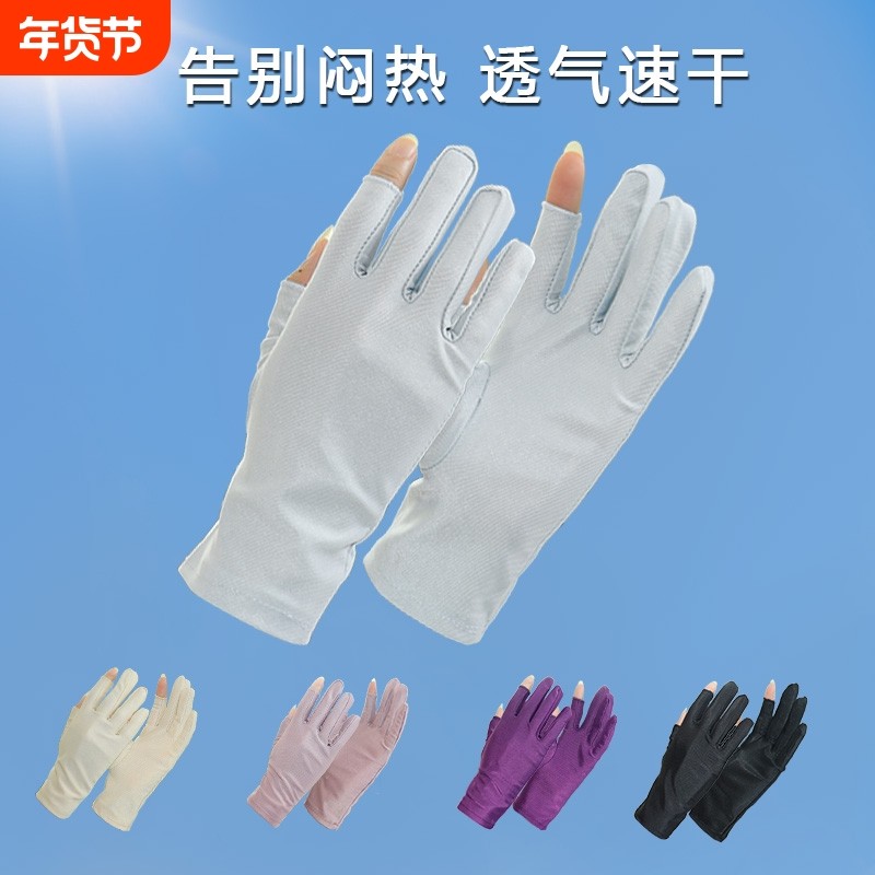 夏季防晒冰丝手套漏二指骑车开车防紫外线触屏透气白色黑色防滑