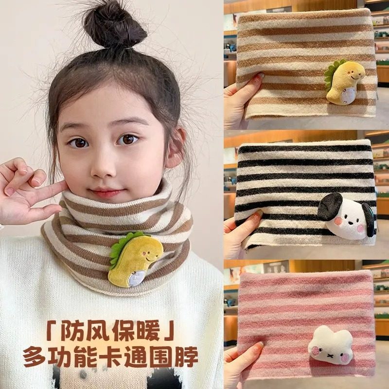 女童围巾2025秋冬新款韩版洋气条纹针织围脖女宝百搭保暖围巾