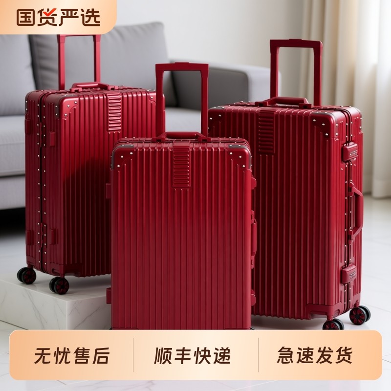 欧渔结婚箱行李箱酒红色陪嫁拉杆箱密码皮箱子拉链款子母铝框托运